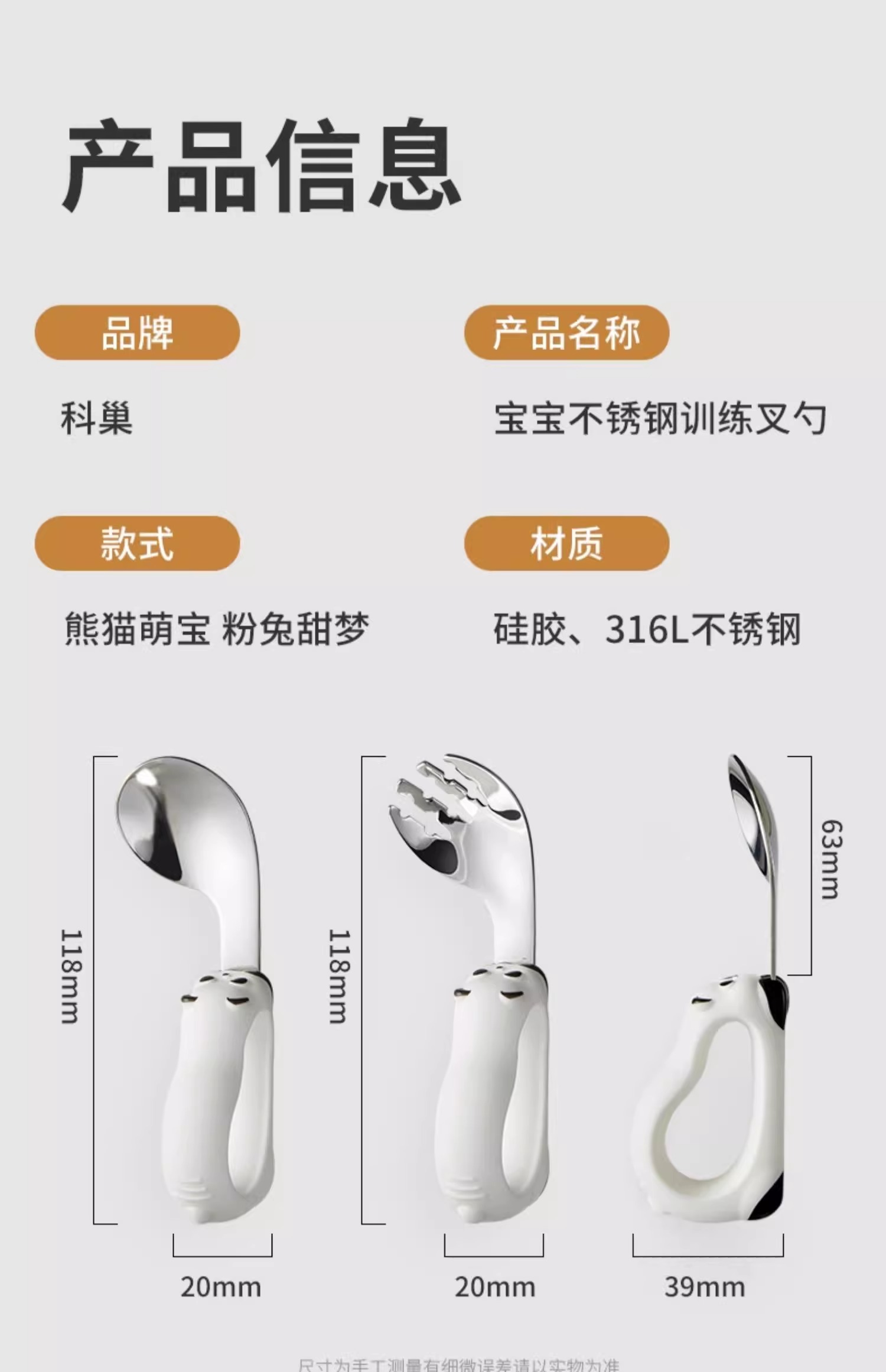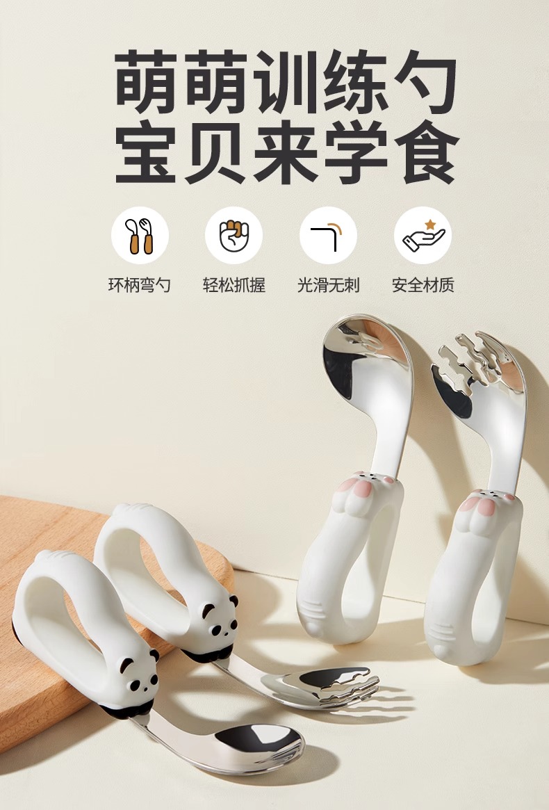 科巢宝宝勺子学吃饭辅食新生婴儿自主进食1岁儿童不锈钢训练叉勺