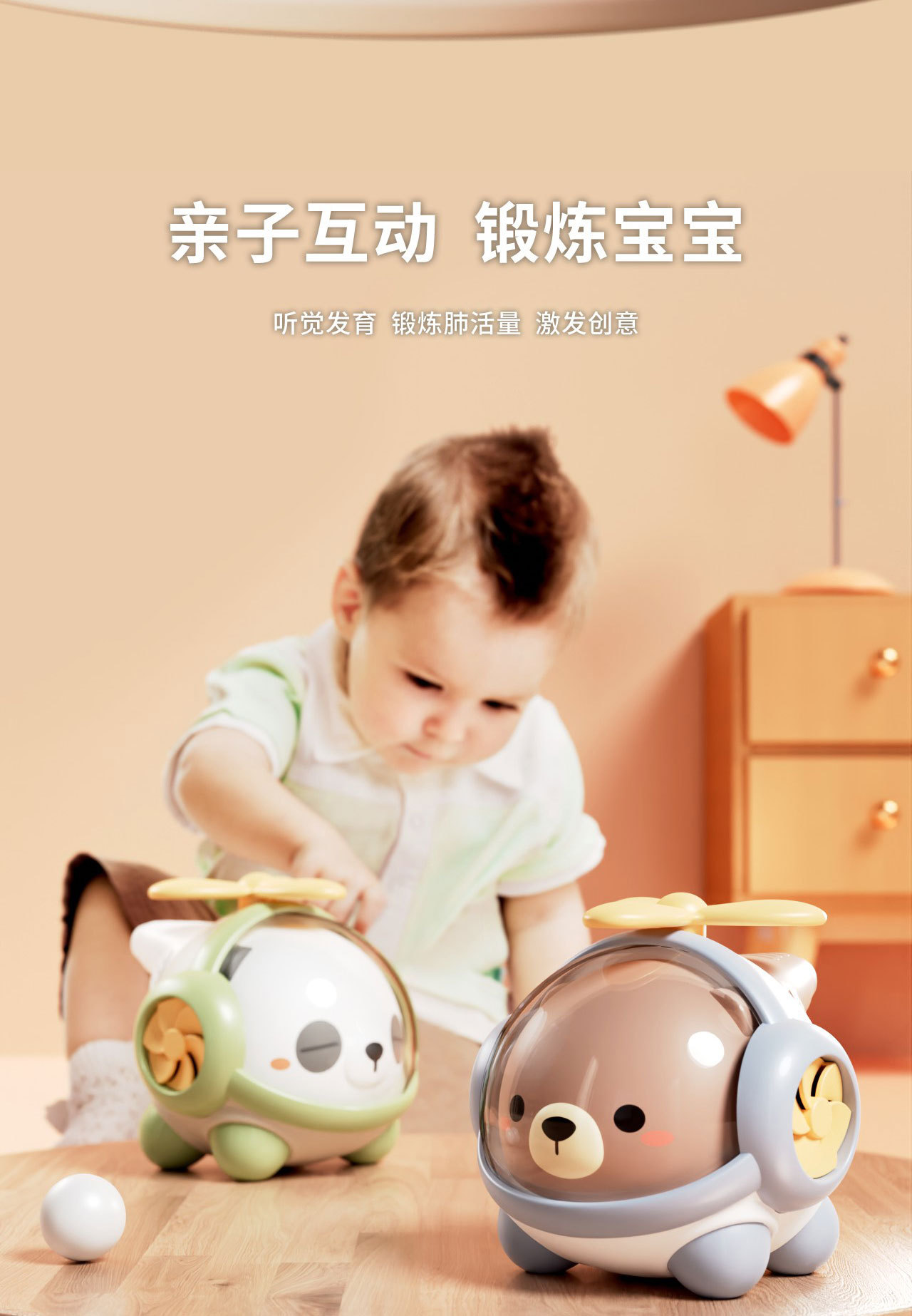 新品喇叭小熊猫直升机 萌趣可爱0-3岁宝宝口哨转转乐婴儿音乐玩具