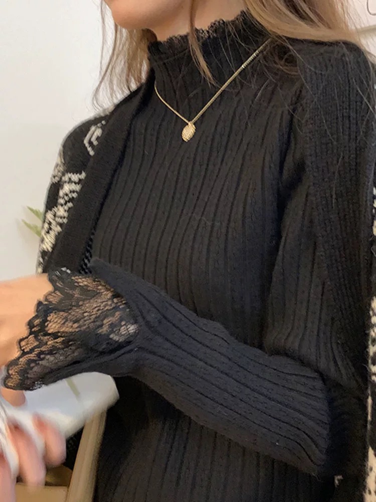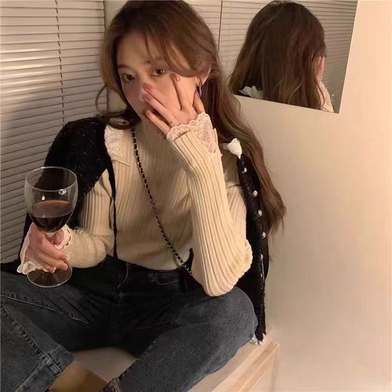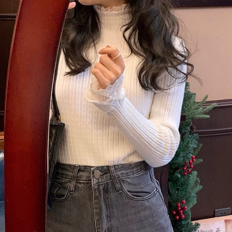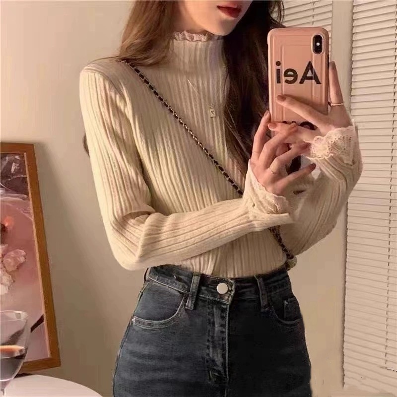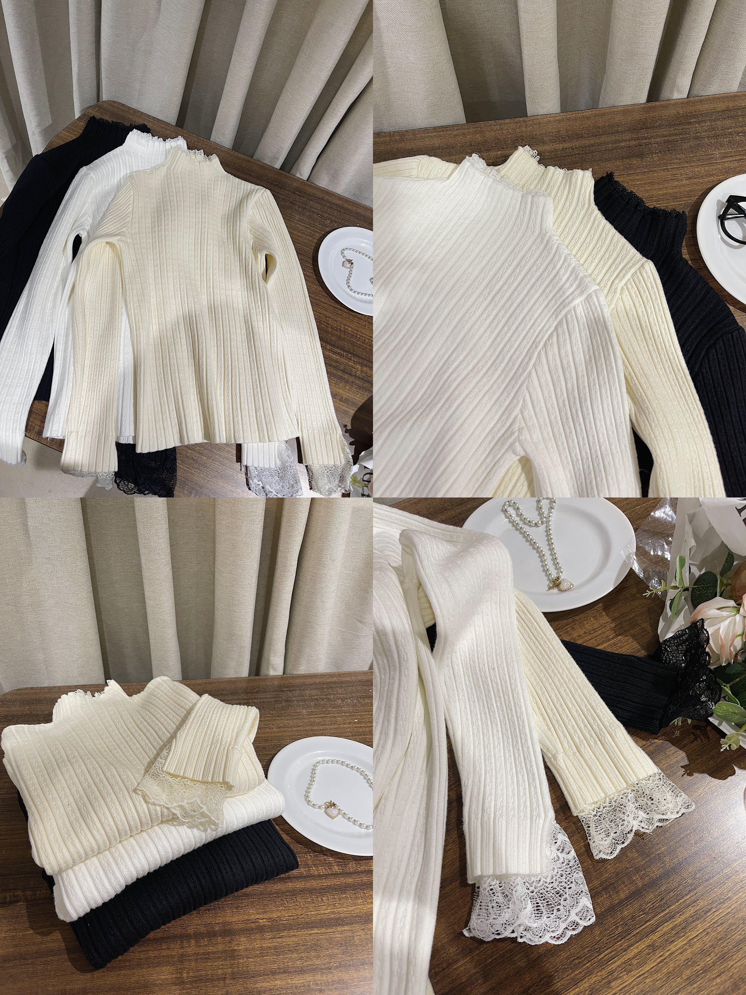 <曾小咸推荐> 蕾丝花边拼接半高领打底衫 日常89.99/件 活动价69.99/件!【预售款,预计3-15天发货】