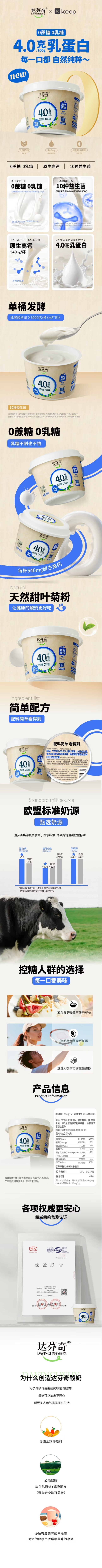 达芬奇4.0克乳蛋白0蔗糖凝固型酸奶450g
