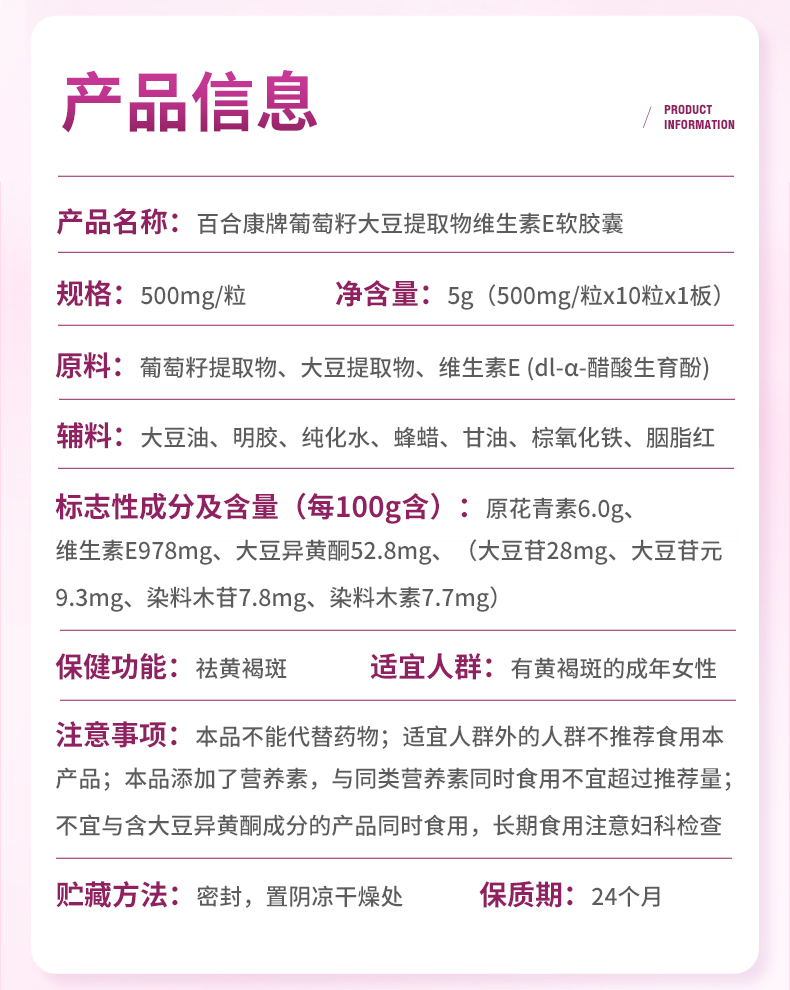 华喜达 百合康牌葡萄籽大豆提取物维生素E软胶囊(板)10粒/板
