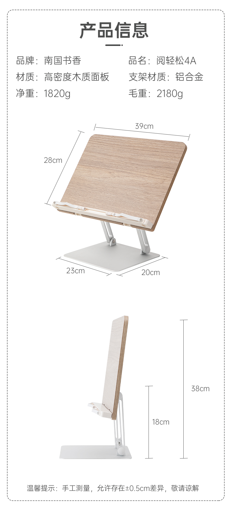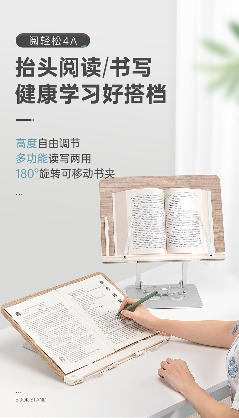 南国书香可升降木质阅读架抬头看书支架读书架可调节伸缩书架桌面书立架考研学生早读晨读神器平板网课绘本