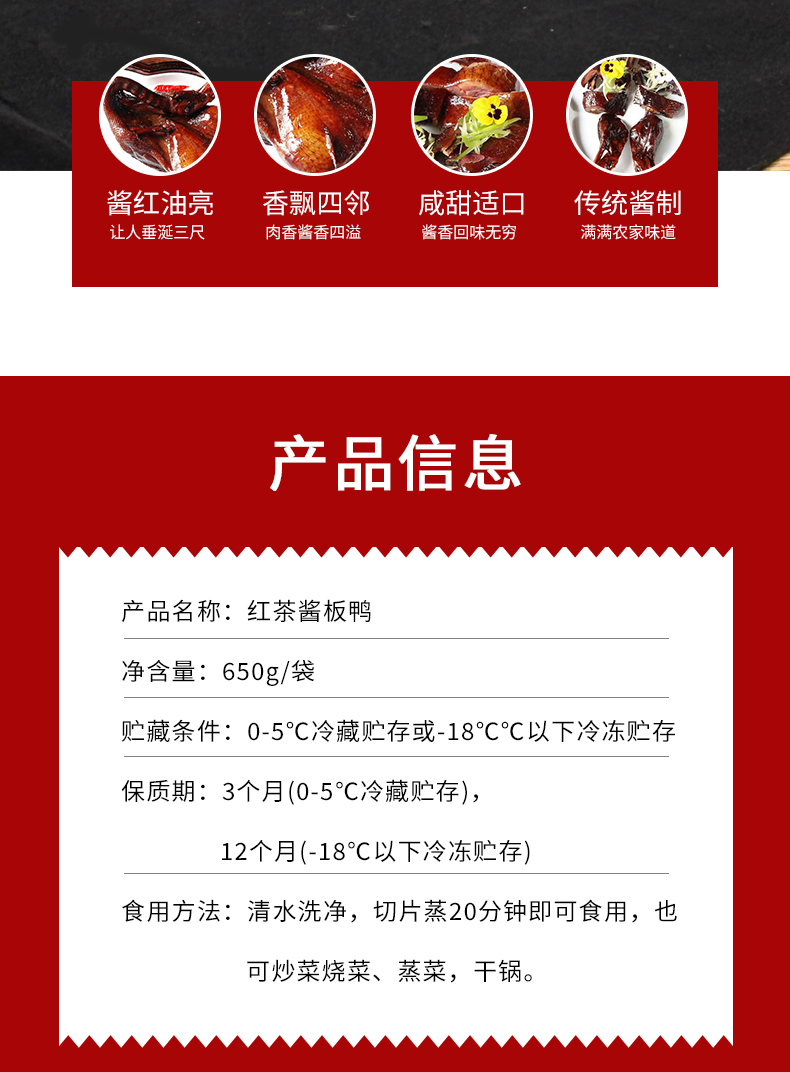 【徽望】整只红茶酱板鸭650g/袋*1袋