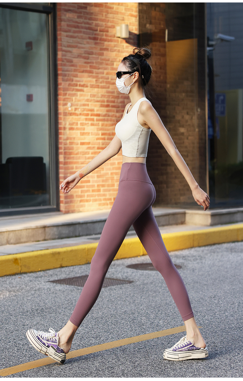 beemen轻薄舒适裸感 双层交叉收腹瑜伽裤女 高腰收腹 舒适不勒 经久耐穿