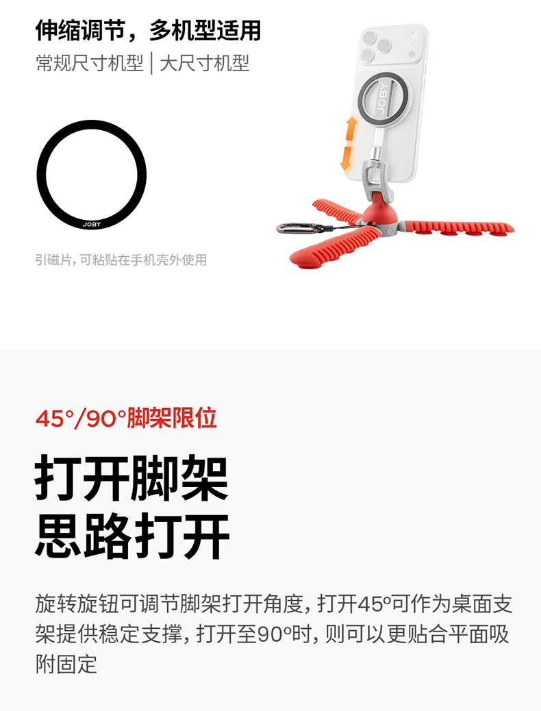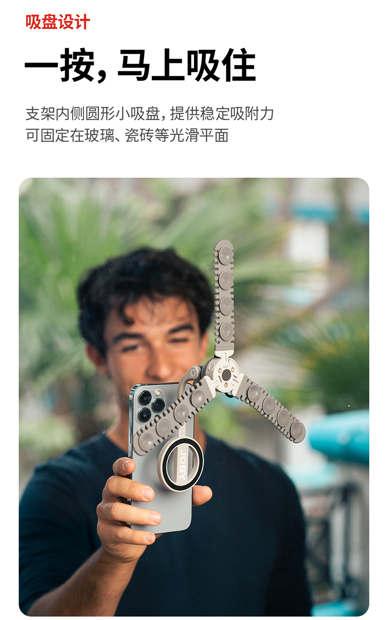 JOBY宙比 PZ01八爪鱼吸盘手机支架适用苹果MagSafe磁吸自拍杆桌面懒人三脚支撑架户外直播拍照录像便携神器