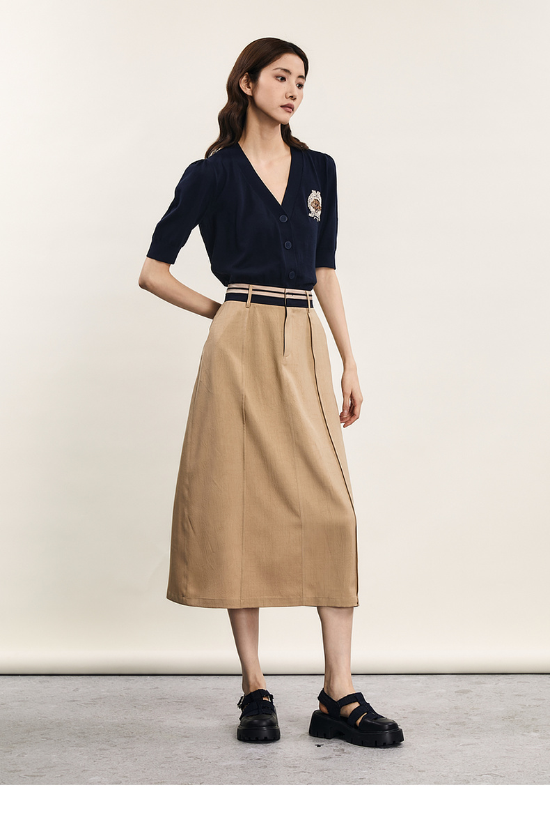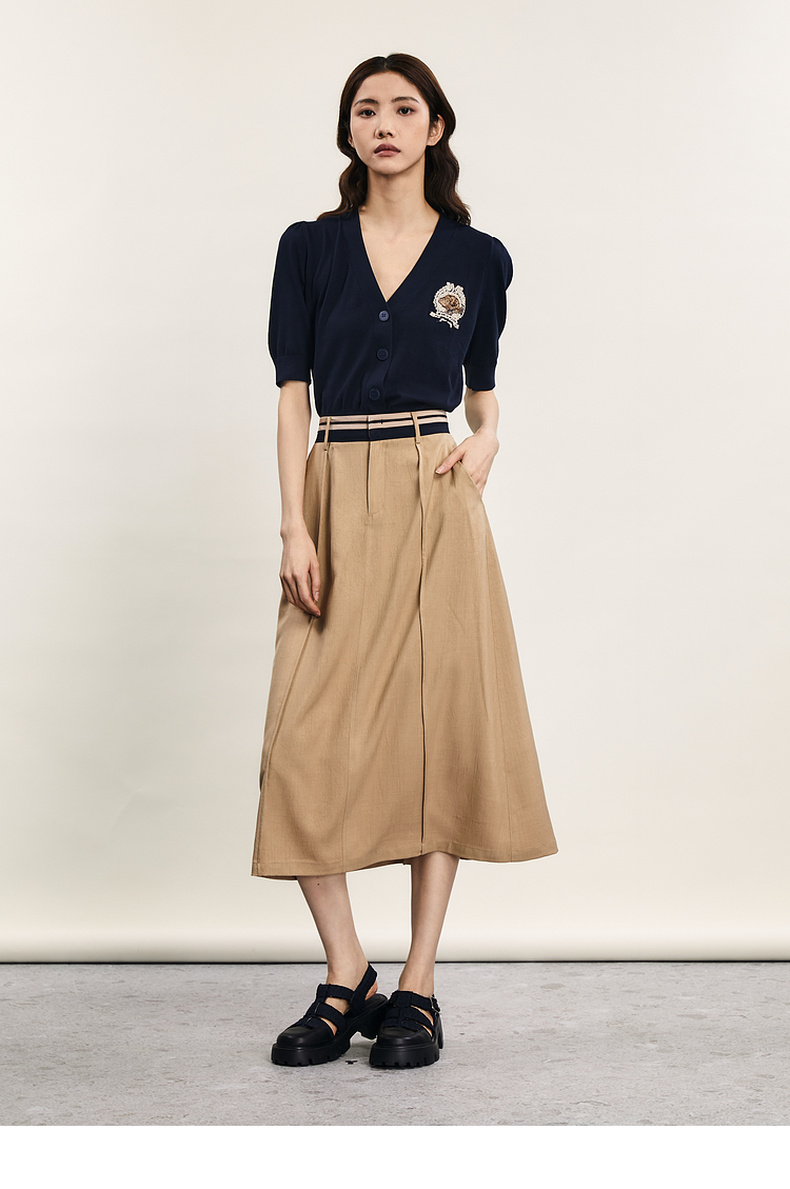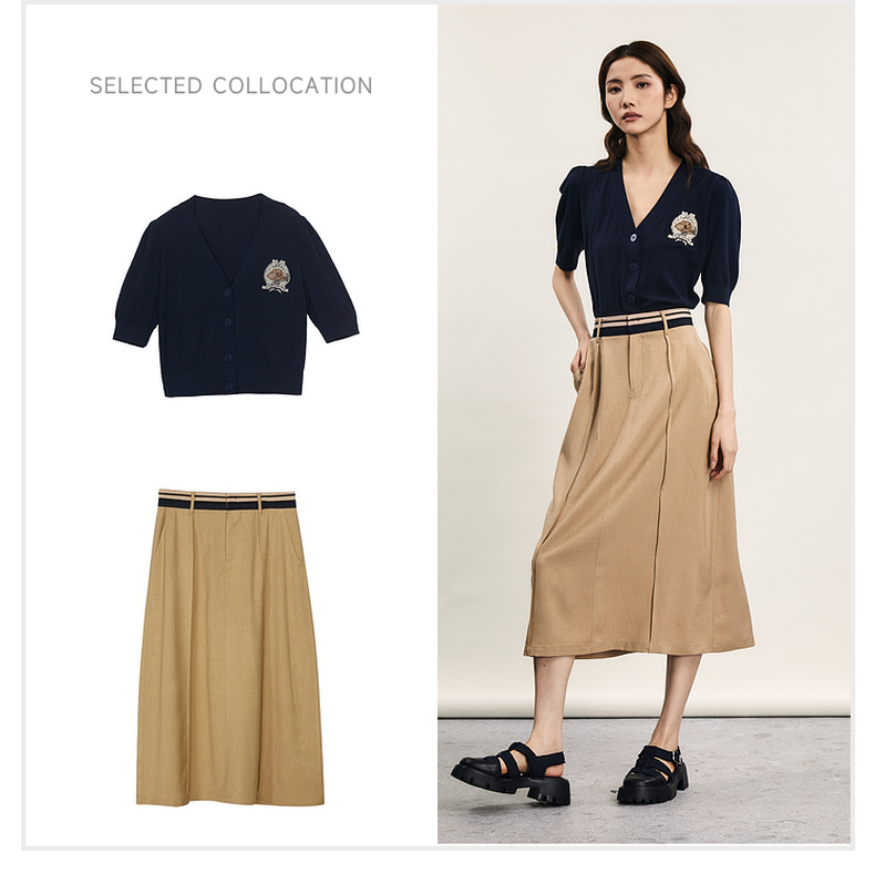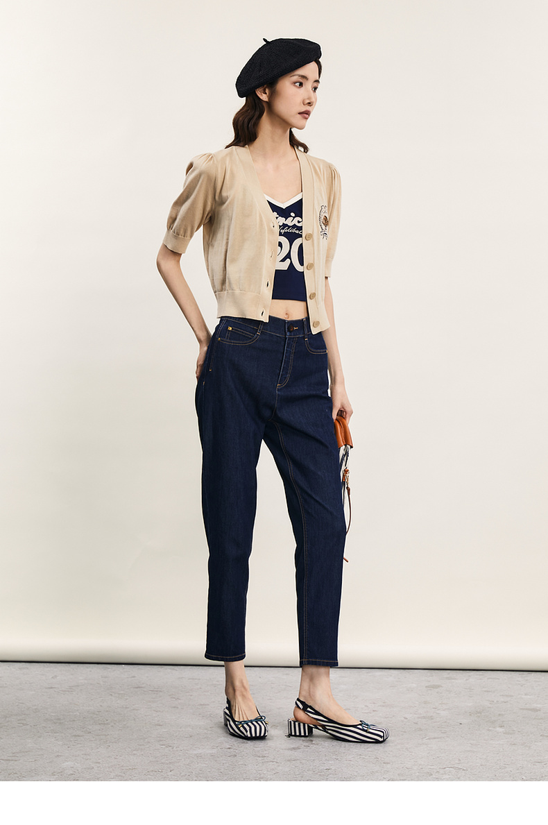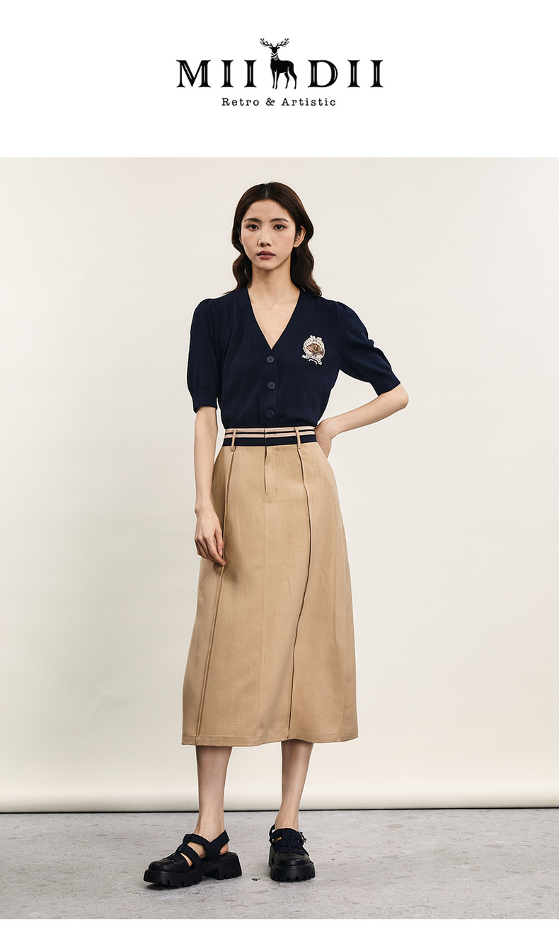 谜底V领针织开衫女士2024年夏季新品文艺风章仔绣花上衣242MZ0850