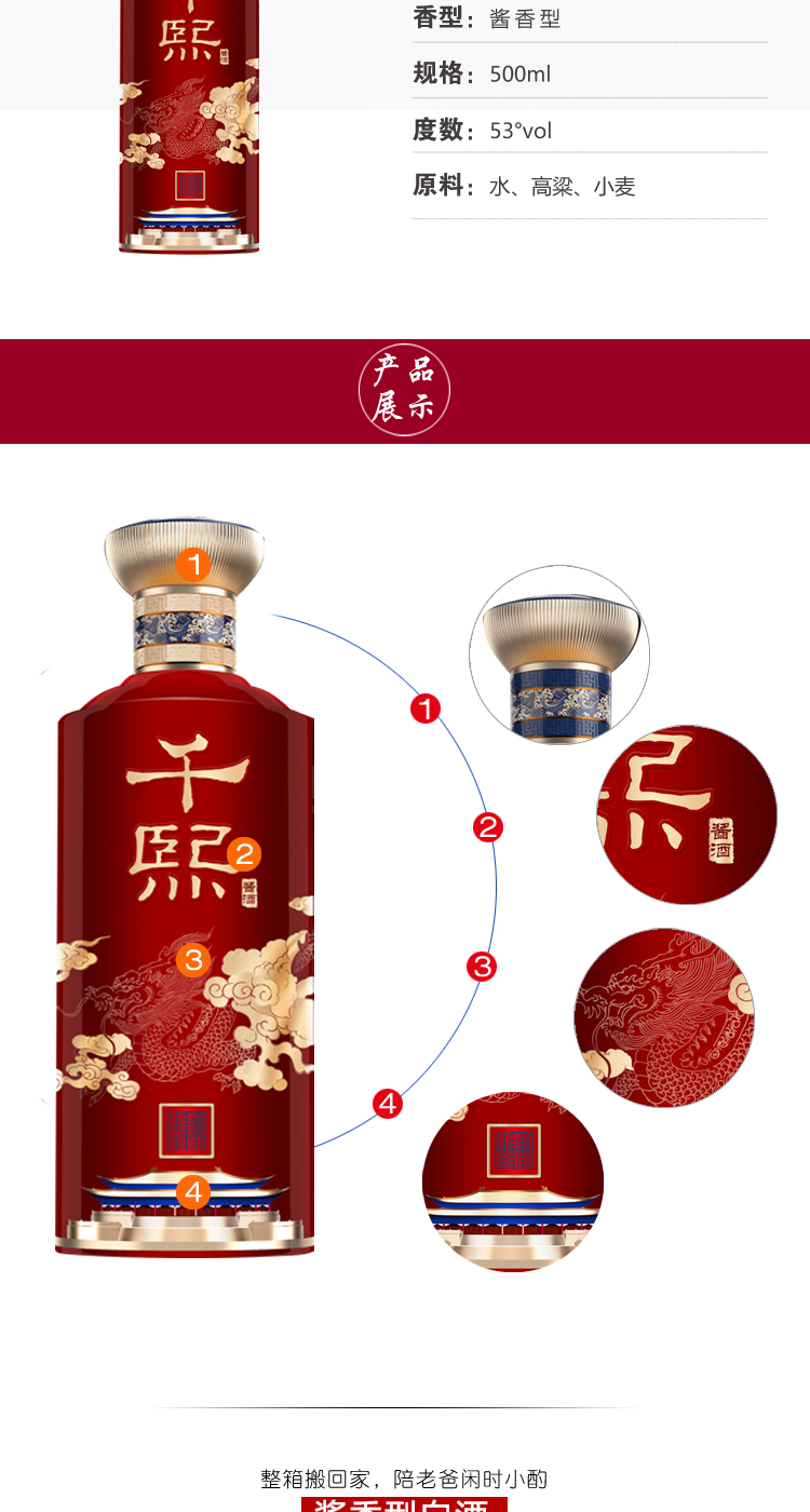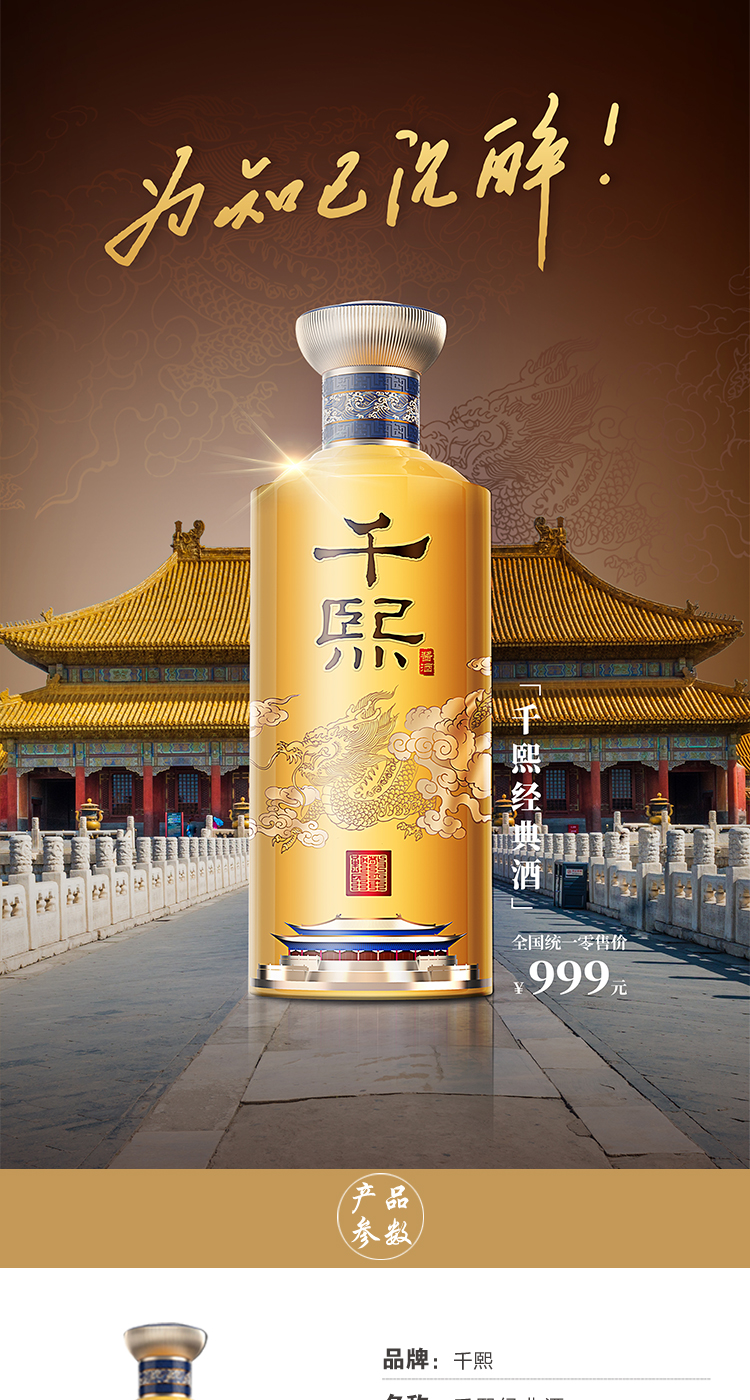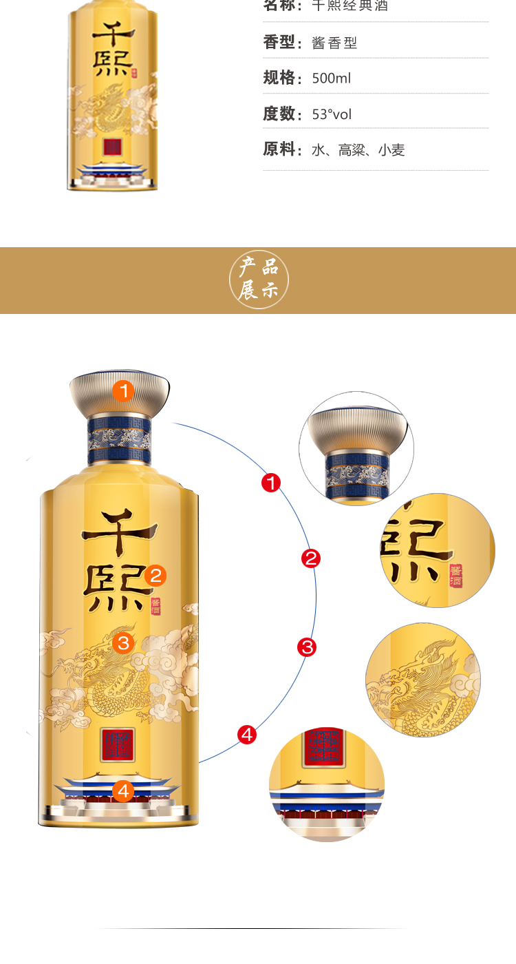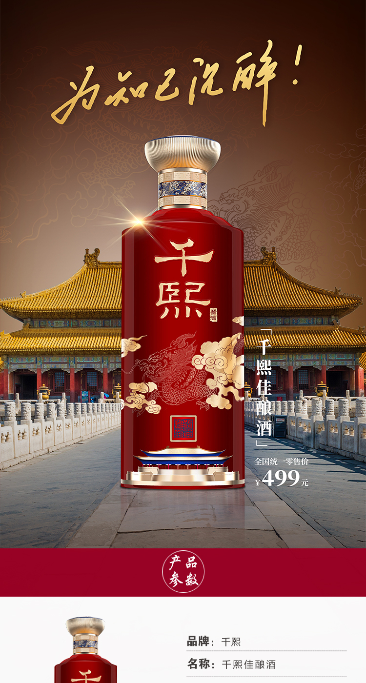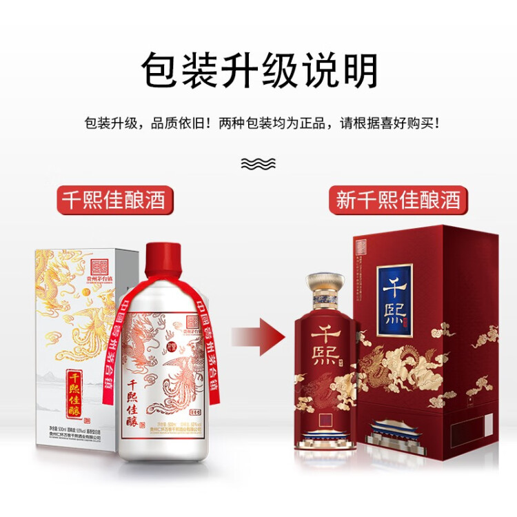 【自营】新千熙经典酒 宫廷风新包装 贵州茅台镇 酱香型白酒 纯粮酿造 坤沙酒 53度500ml 单瓶 500ml