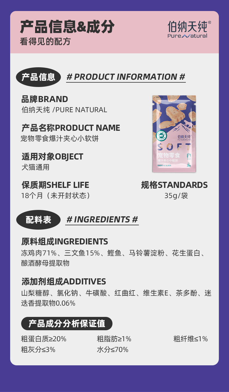伯纳天纯宠物零食爆汁夹心小软饼迷迭香烤鸡肉三文鱼35g