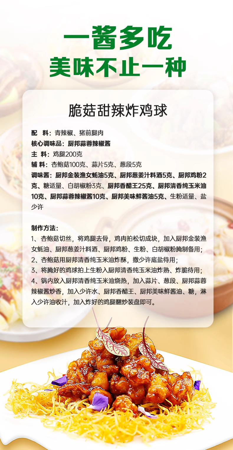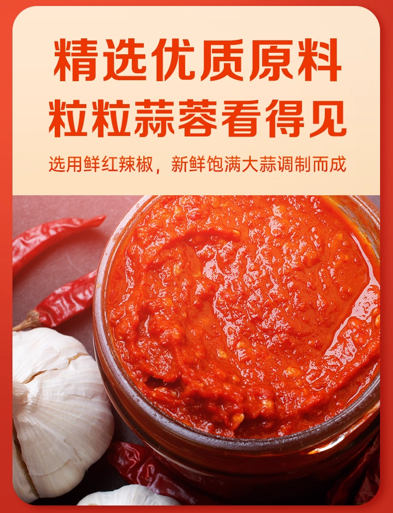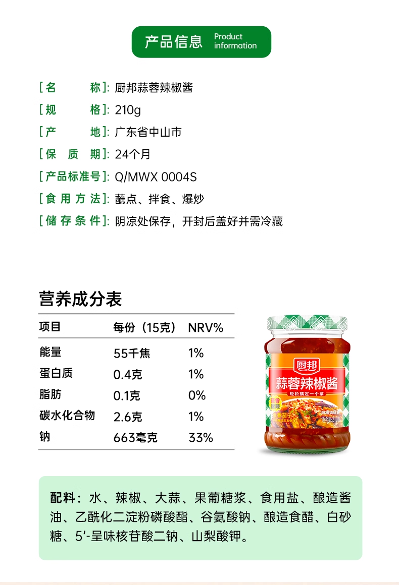厨邦蒜蓉辣椒酱210g*1瓶下饭酱辣椒酱炒菜调味料瓶装调味酱剁椒酱LY