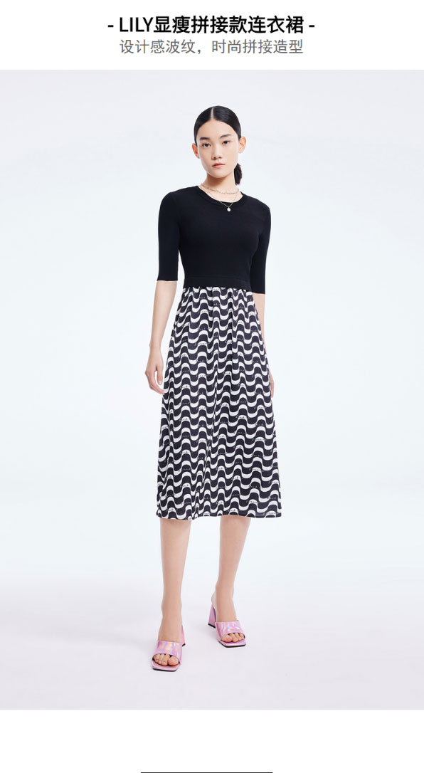 LILY2022夏女装奥特莱斯店修身显瘦高腰针织连衣裙122200T7318