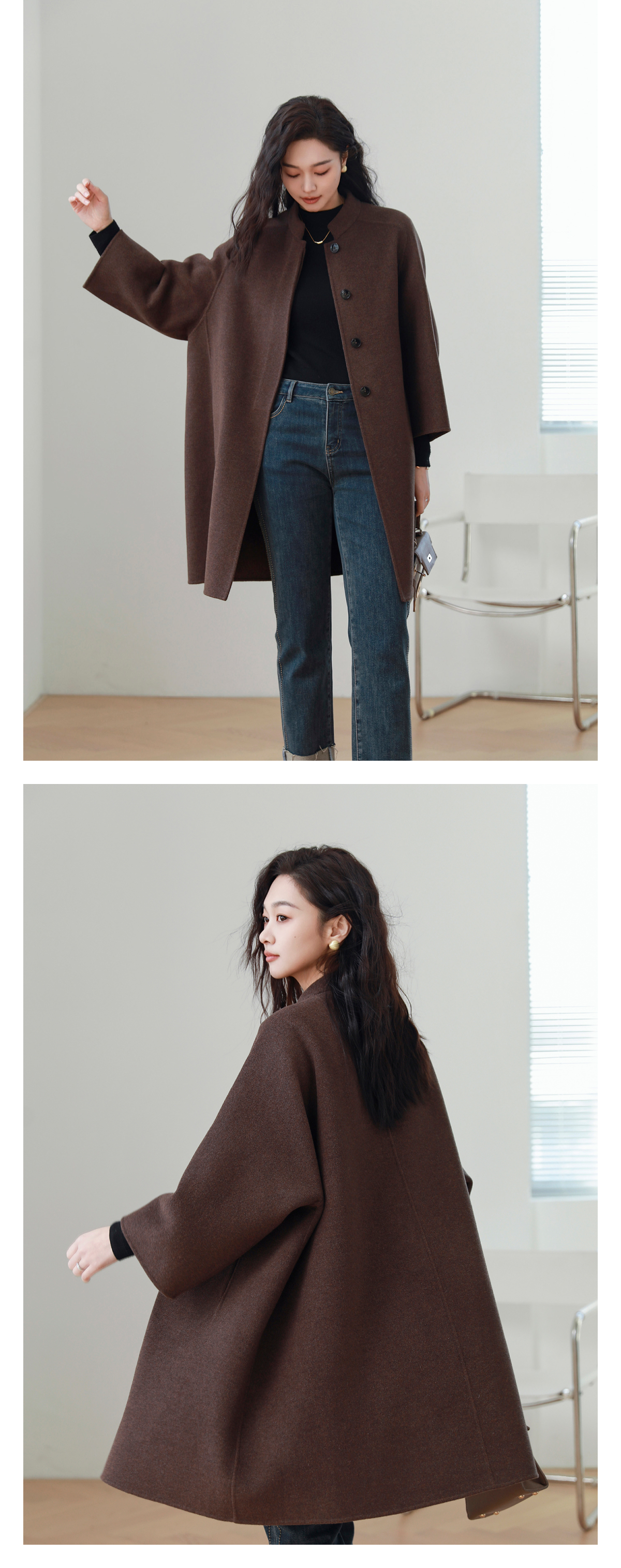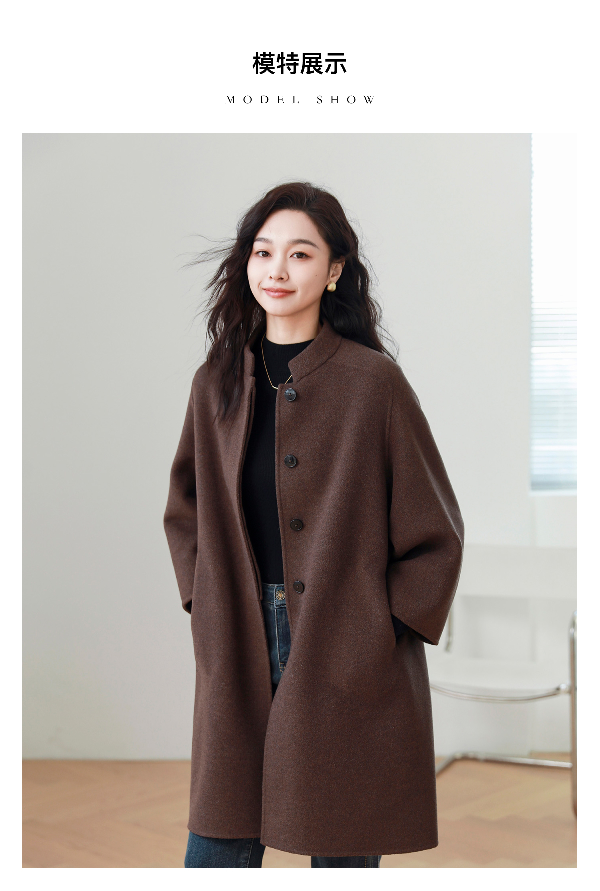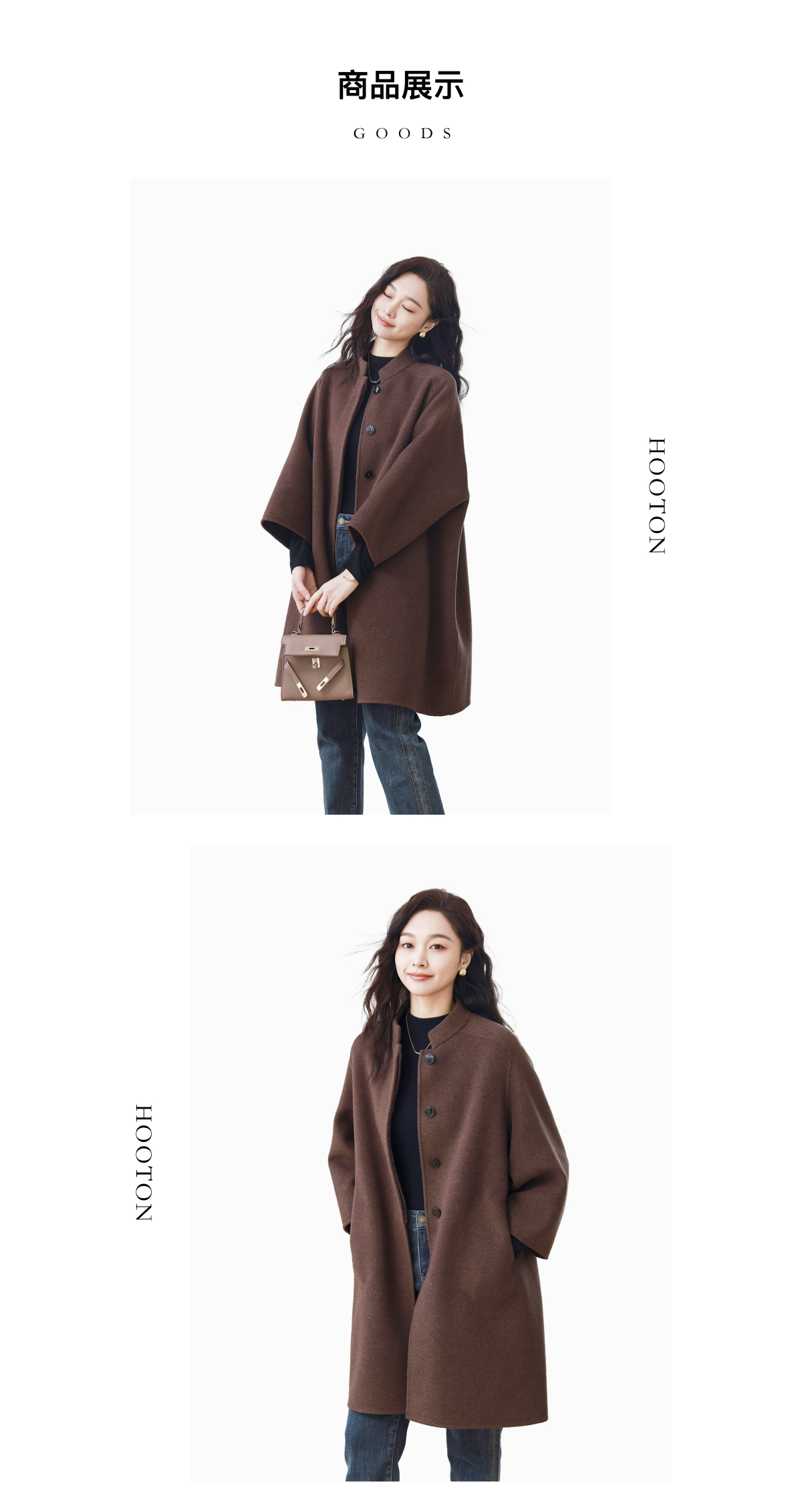 火桐hooton 新年战袍 气质立领双面羊绒大衣3466
