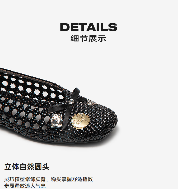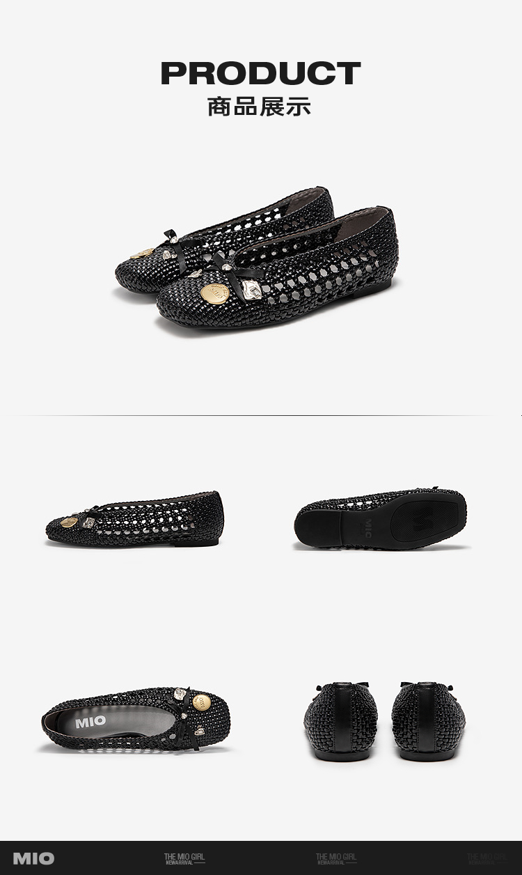 MIO米奥夏季新款浅口单鞋女圆头轻便渔夫鞋平底时尚镂空凉鞋M251495801