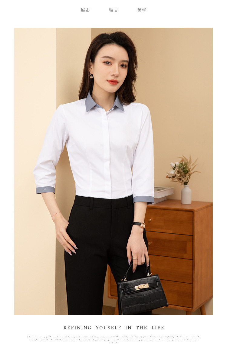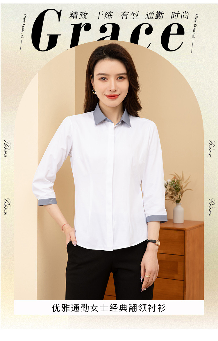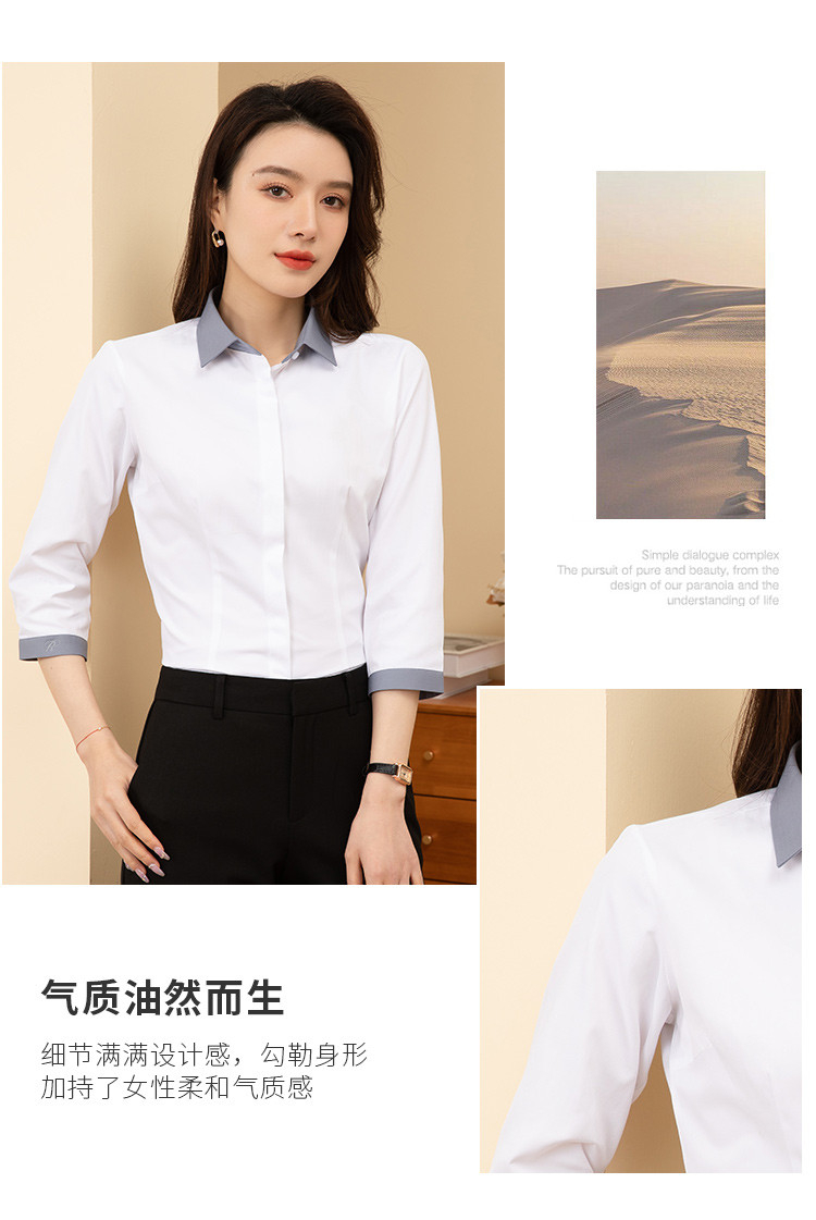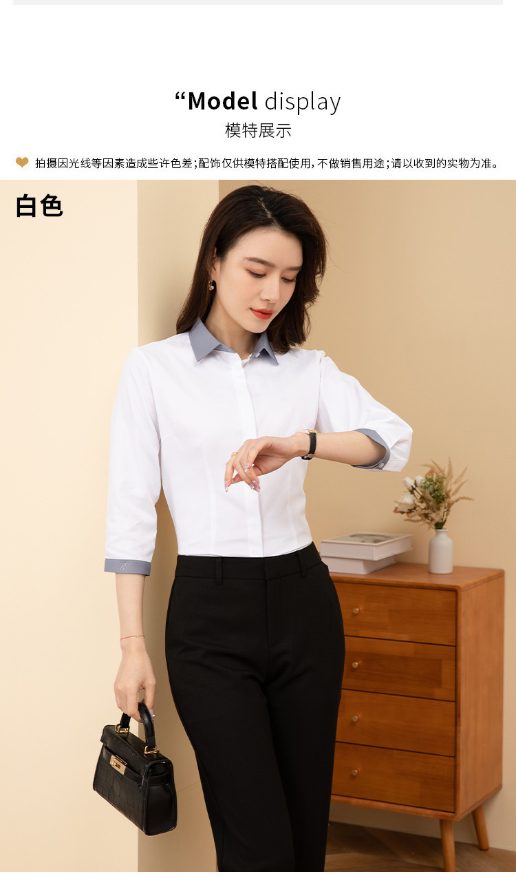【拼色设计】罗蒙夏季短袖衬衫女士修身显瘦商务通勤撞色气质衬衣