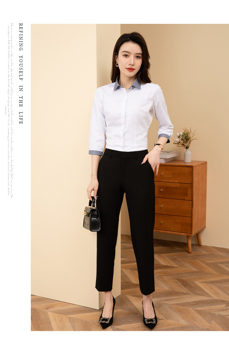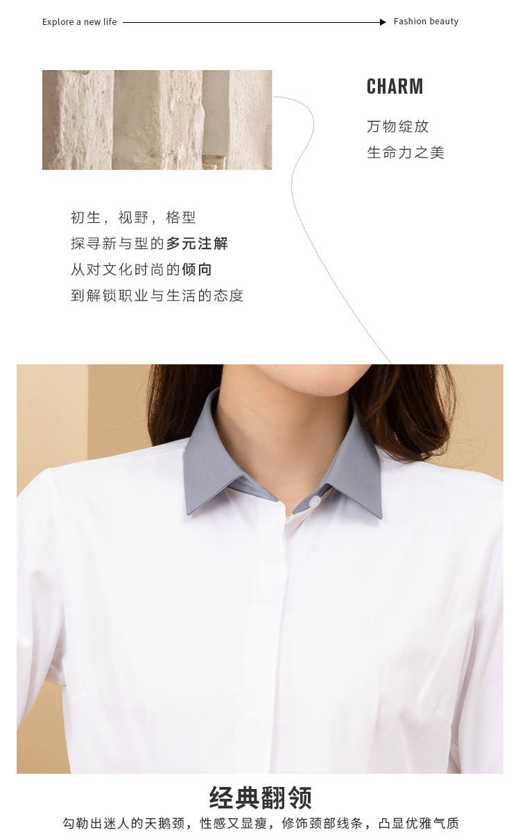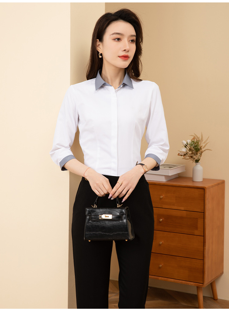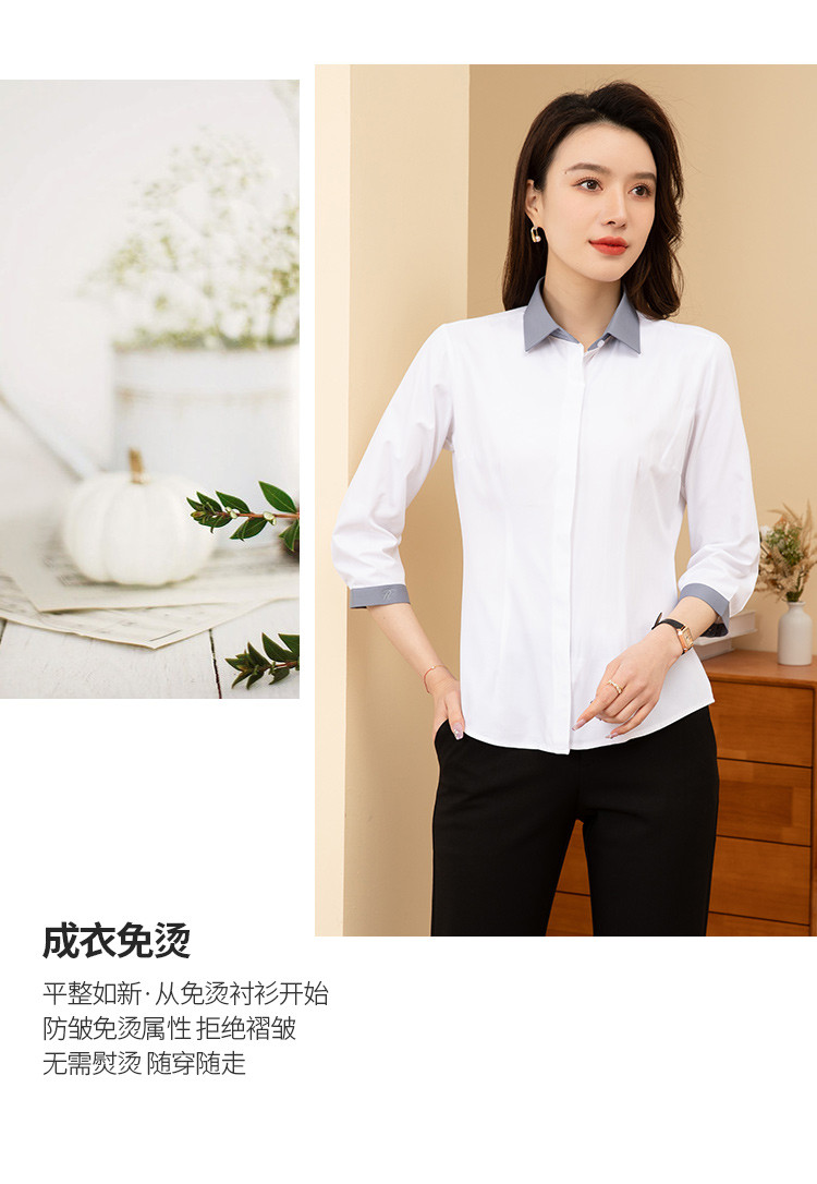 【拼色设计】罗蒙夏季短袖衬衫女士修身显瘦商务通勤撞色气质衬衣