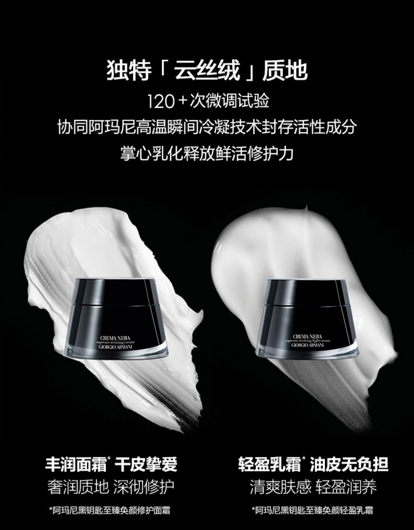 作为阿玛尼最高端的护肤系列,主打修复➕抗老➕持久保湿,