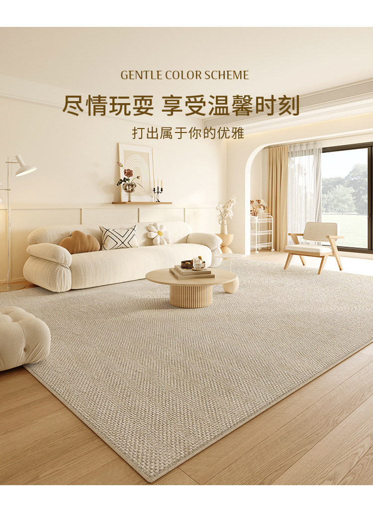 【0甲醛+高效抗菌+防螨】地毯客厅卧室奶油风纯色防水耐脏免打理地垫 ,抗污免洗一擦即净!咖啡茶渍通通搞定,亲肤无甲醛,品质感爆棚✨