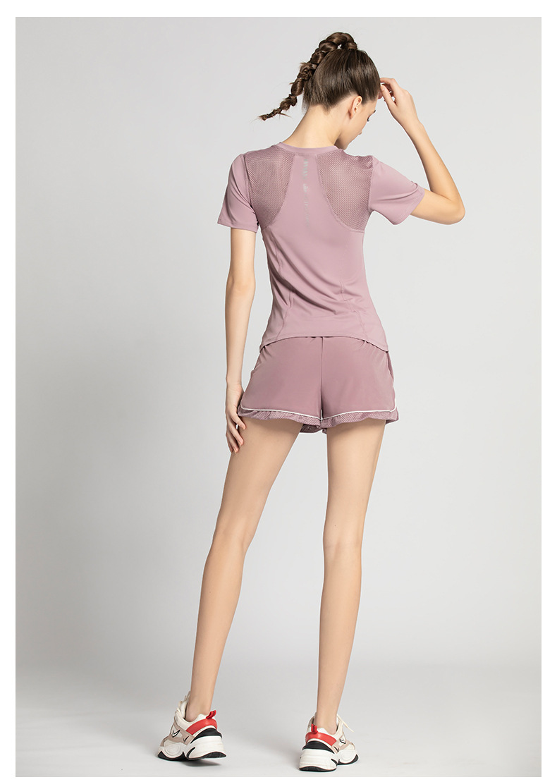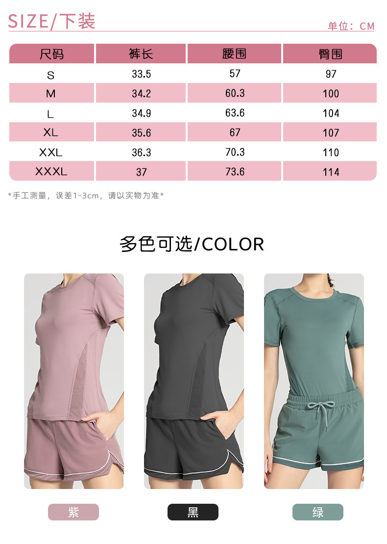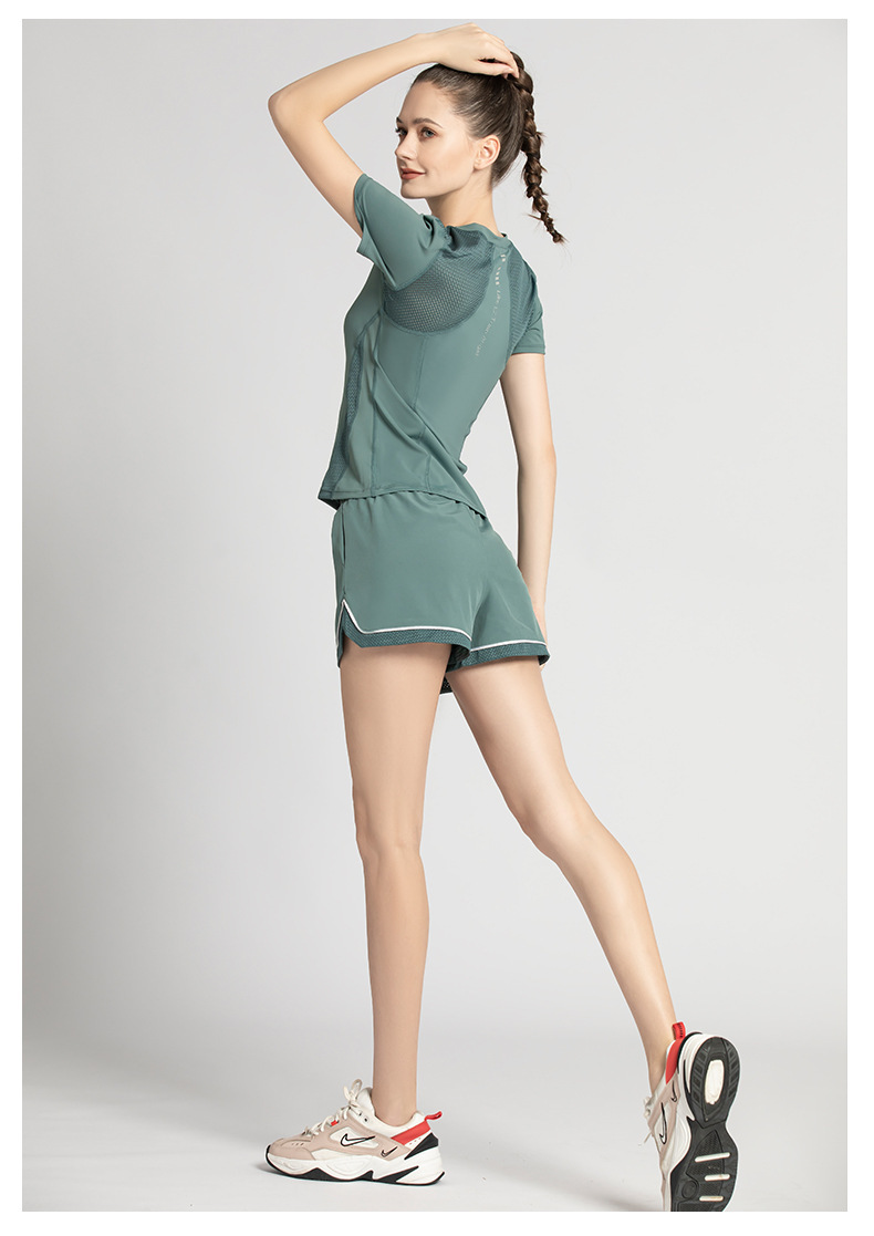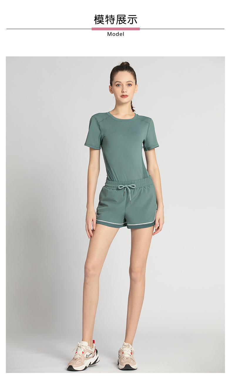 【时尚舒适,激情瑜伽!】网纱透气短袖短裤套装,自由呼吸之选!拼接网纱,修身显瘦。速干吸汗,一秒清凉!绽放青春,释放活力!
