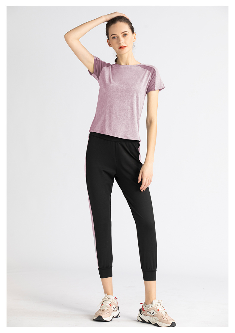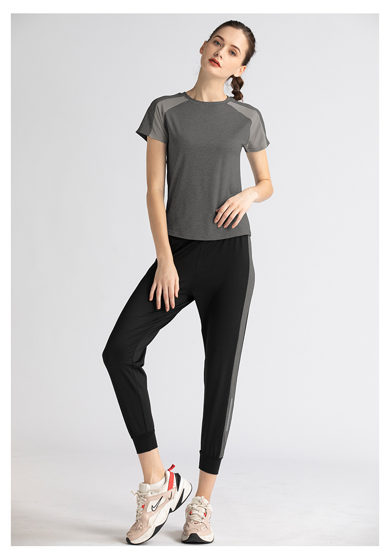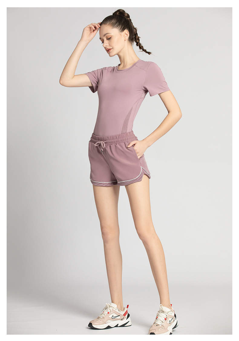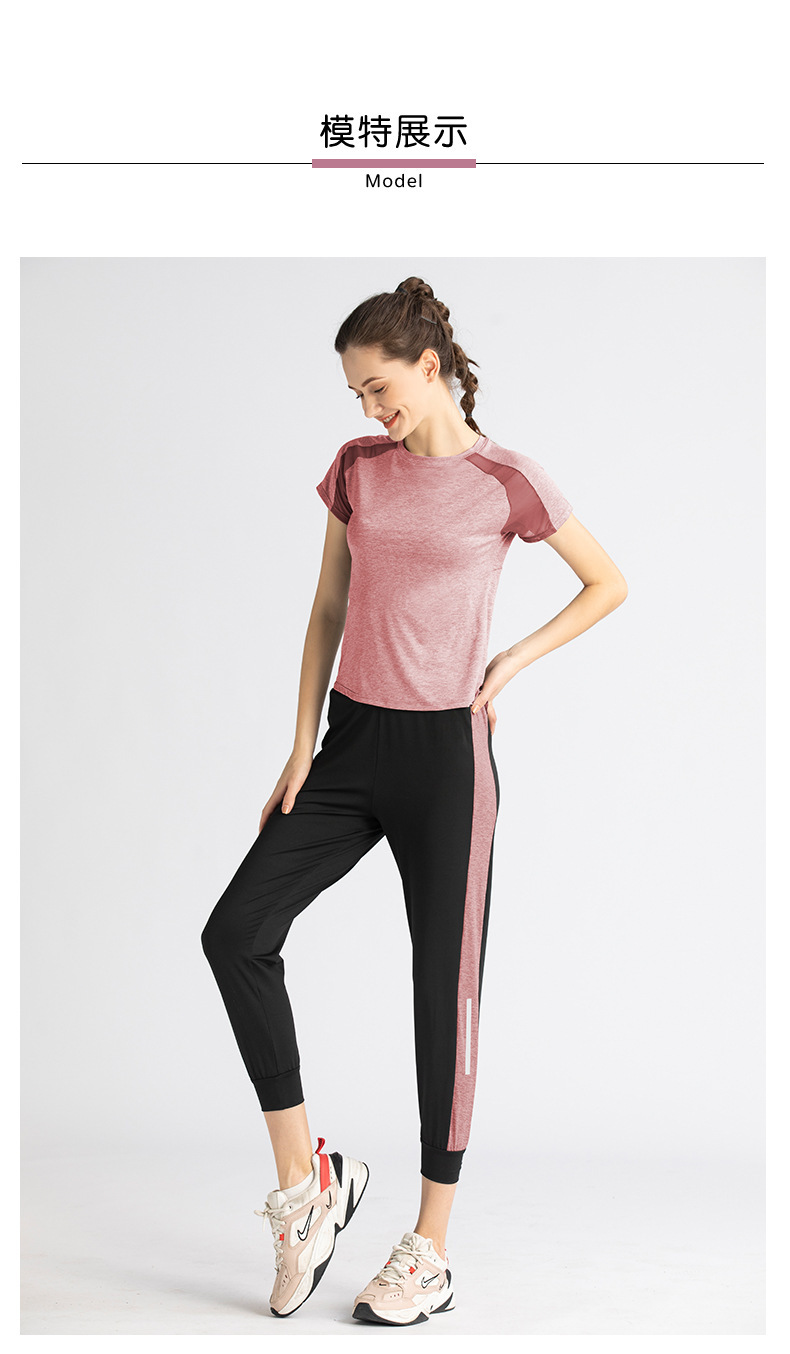 【时尚舒适,激情瑜伽!】网纱透气短袖短裤套装,自由呼吸之选!拼接网纱,修身显瘦。速干吸汗,一秒清凉!绽放青春,释放活力!
