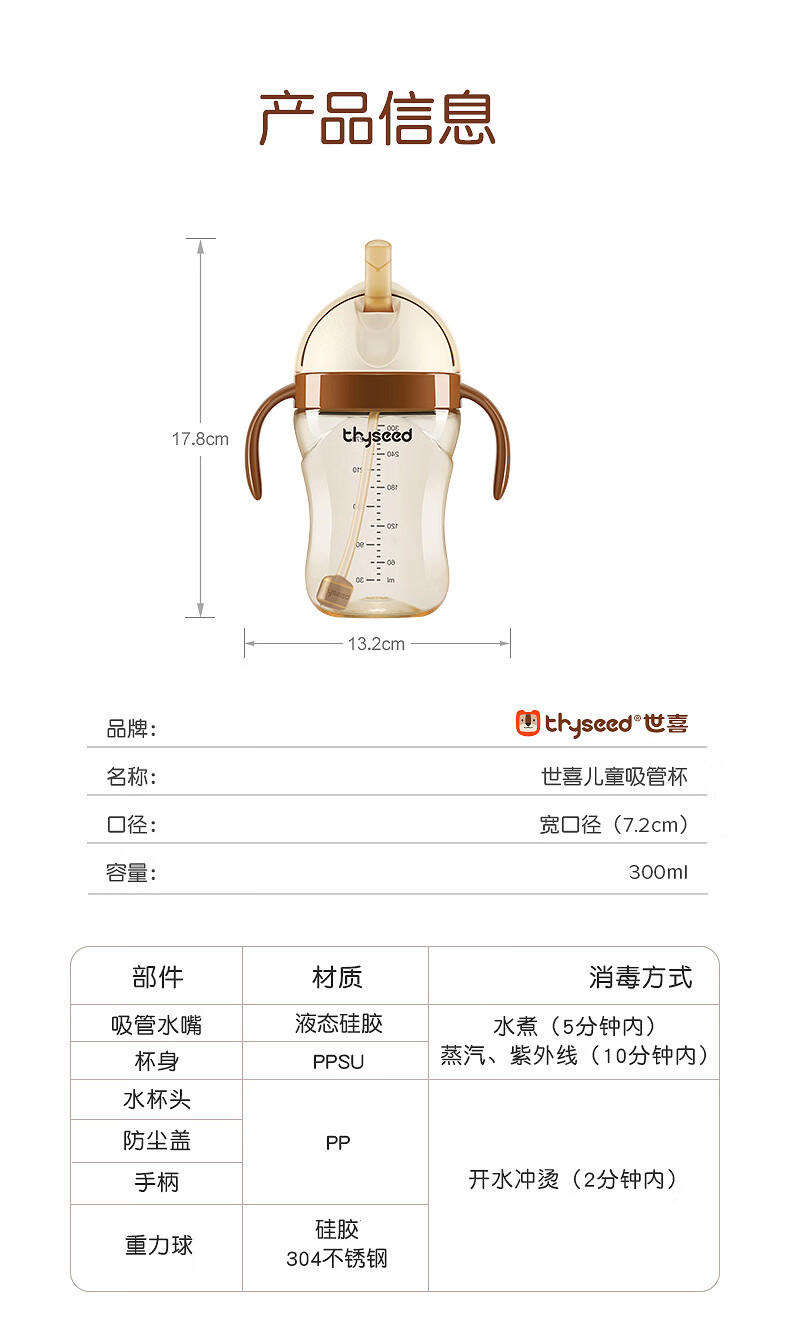 世喜儿童吸管杯PPSU 300ml 及配件(禁止上架公域平台和实体店)