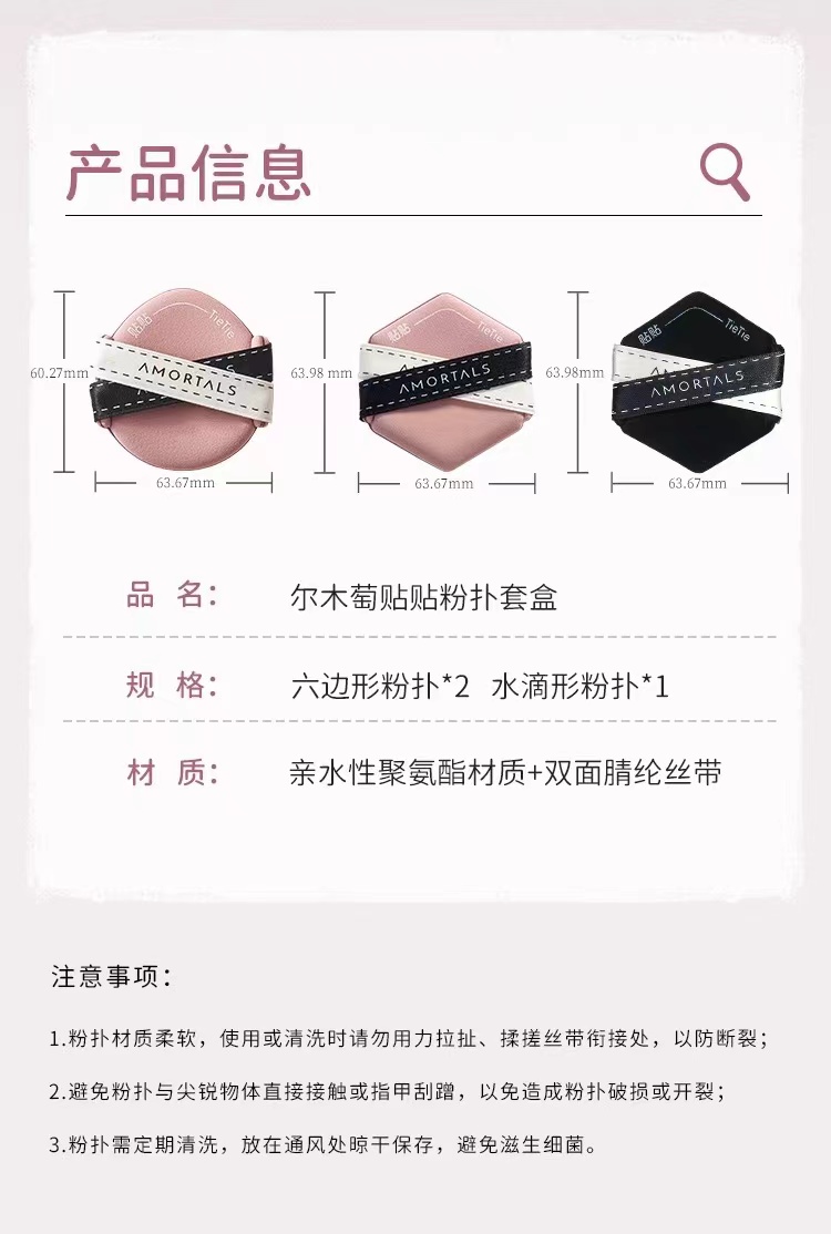 尔木萄贴贴双面气垫粉扑3枚装 干湿两用双绷带不吃粉底液遮瑕服帖定妆