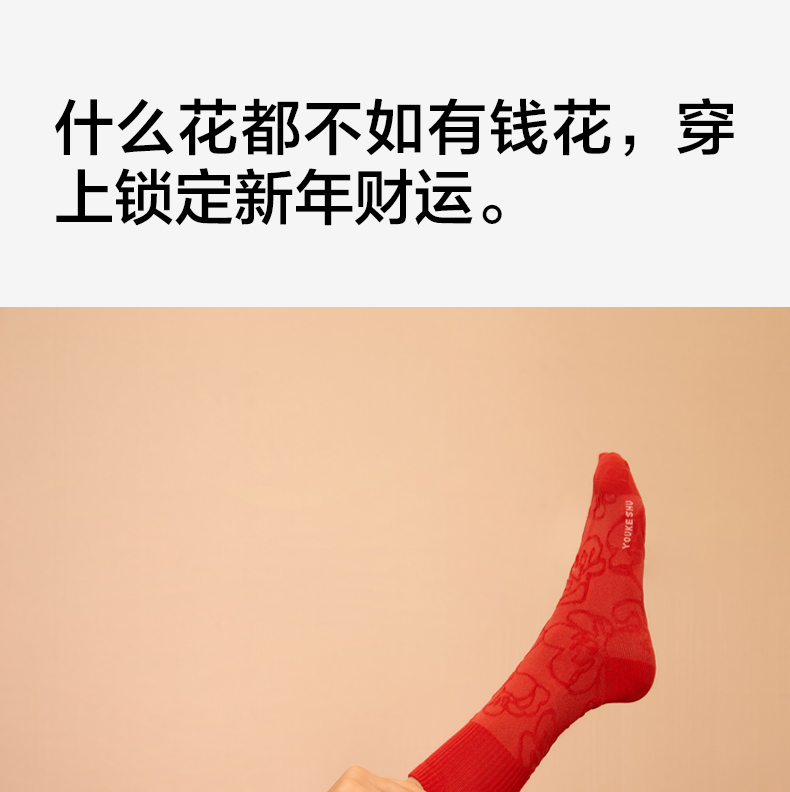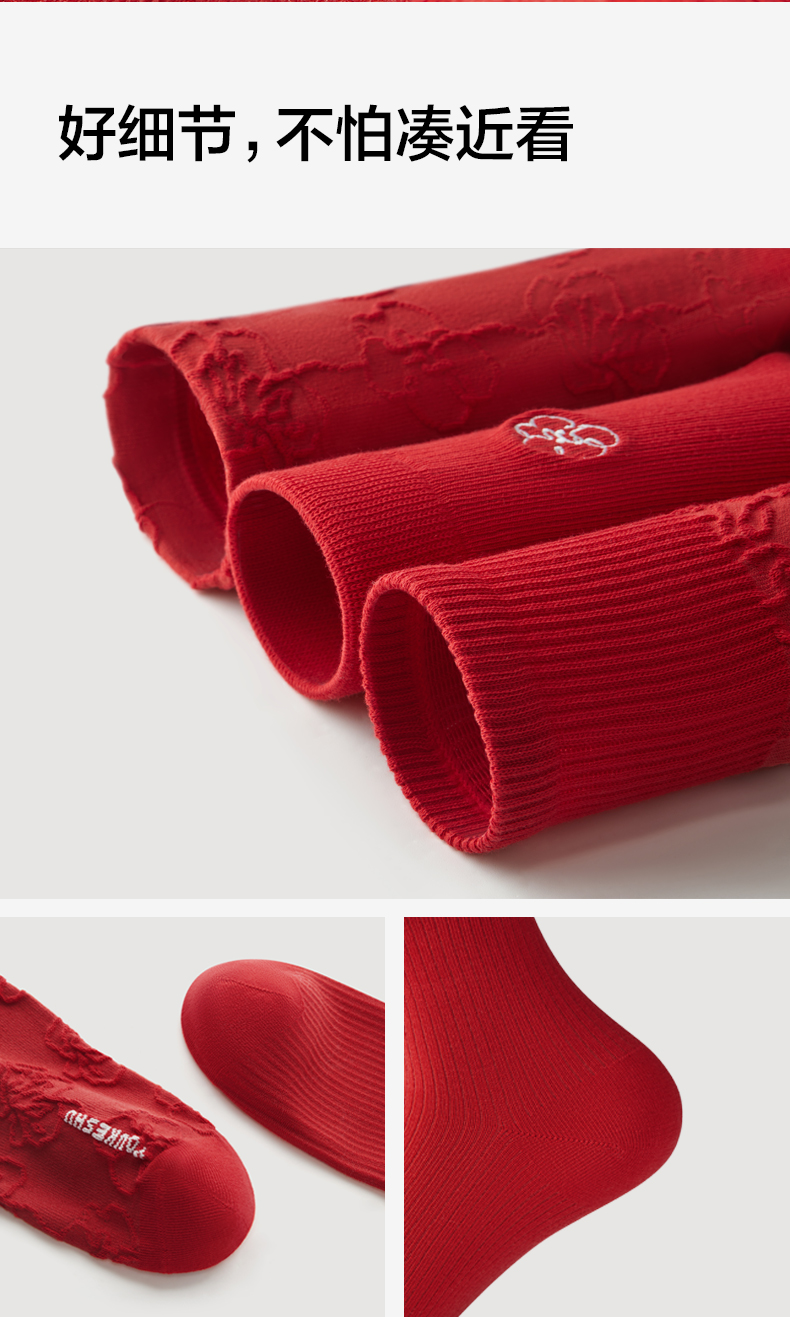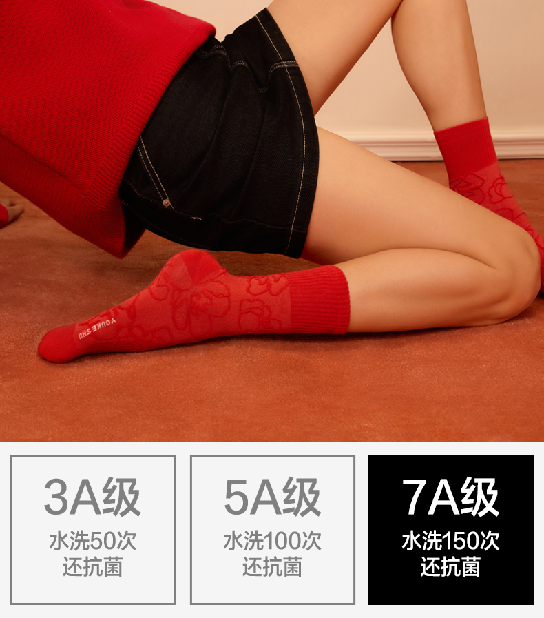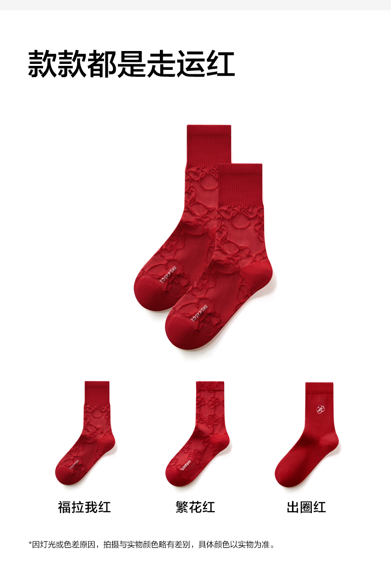 【出圈红】有棵树新年本命年红色7A抗菌女士中筒袜3双装-4022