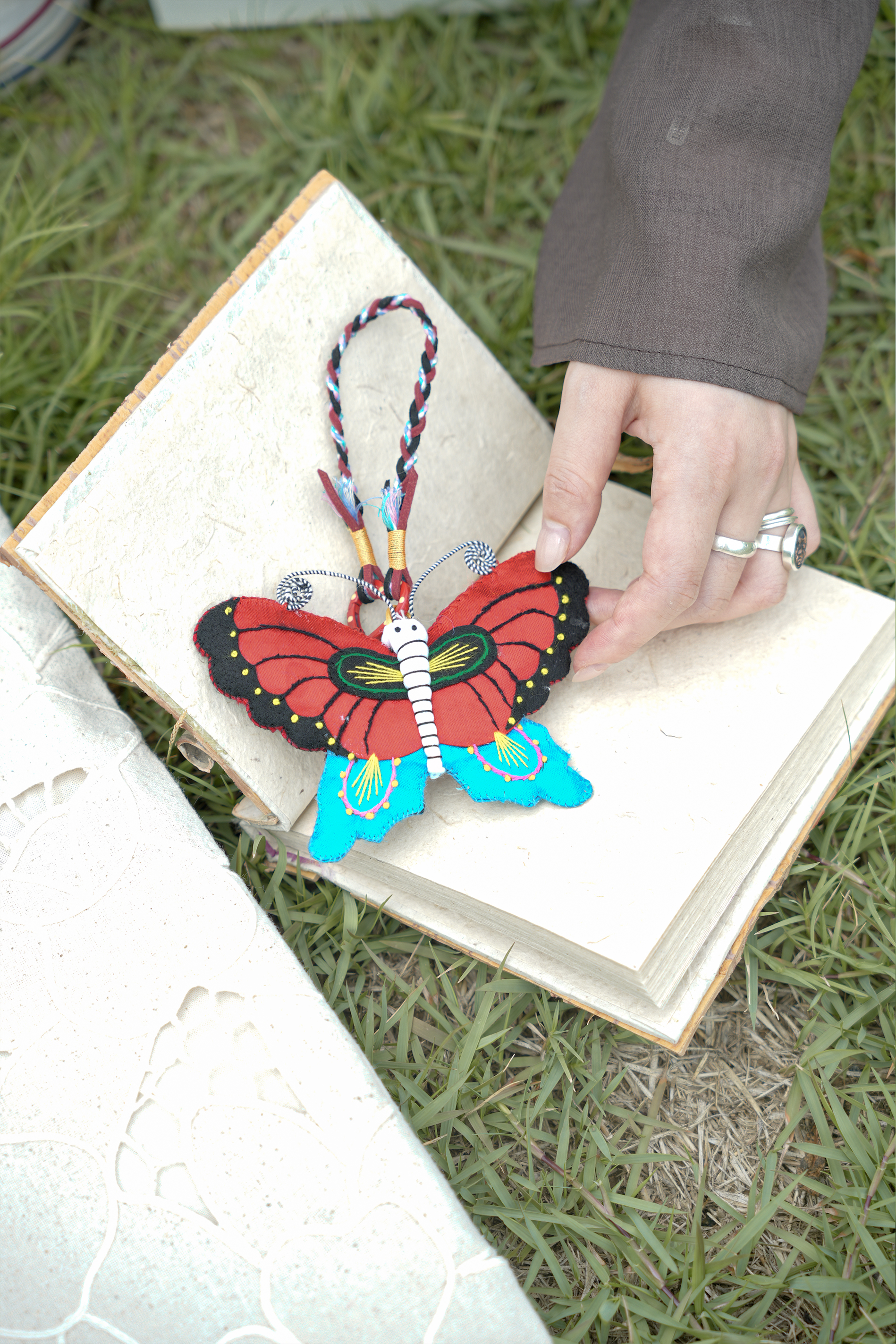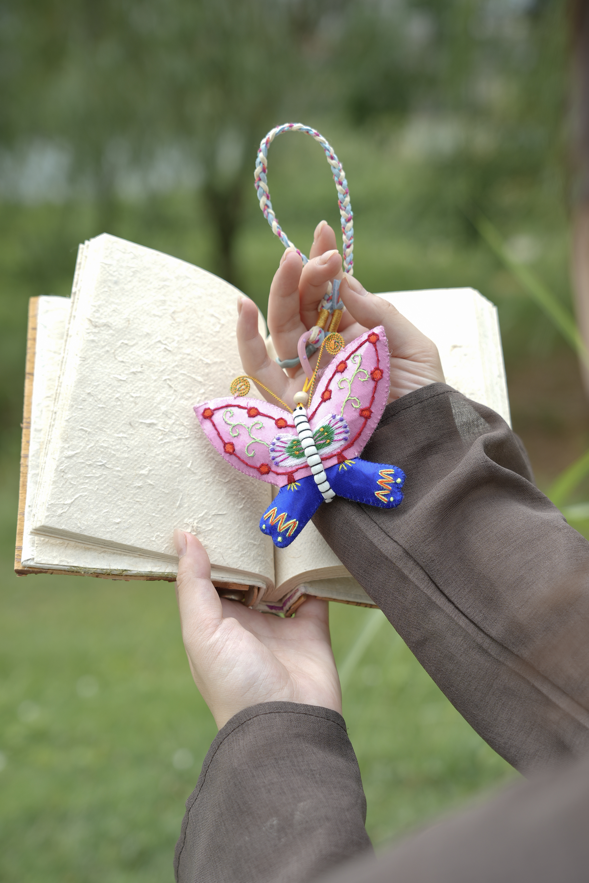 了不起的匠人联合西秦刺绣的非遗工坊,从材质和色彩对其进行改良,为每只蝴蝶的品质严格把关,承诺均为手工缝制而成