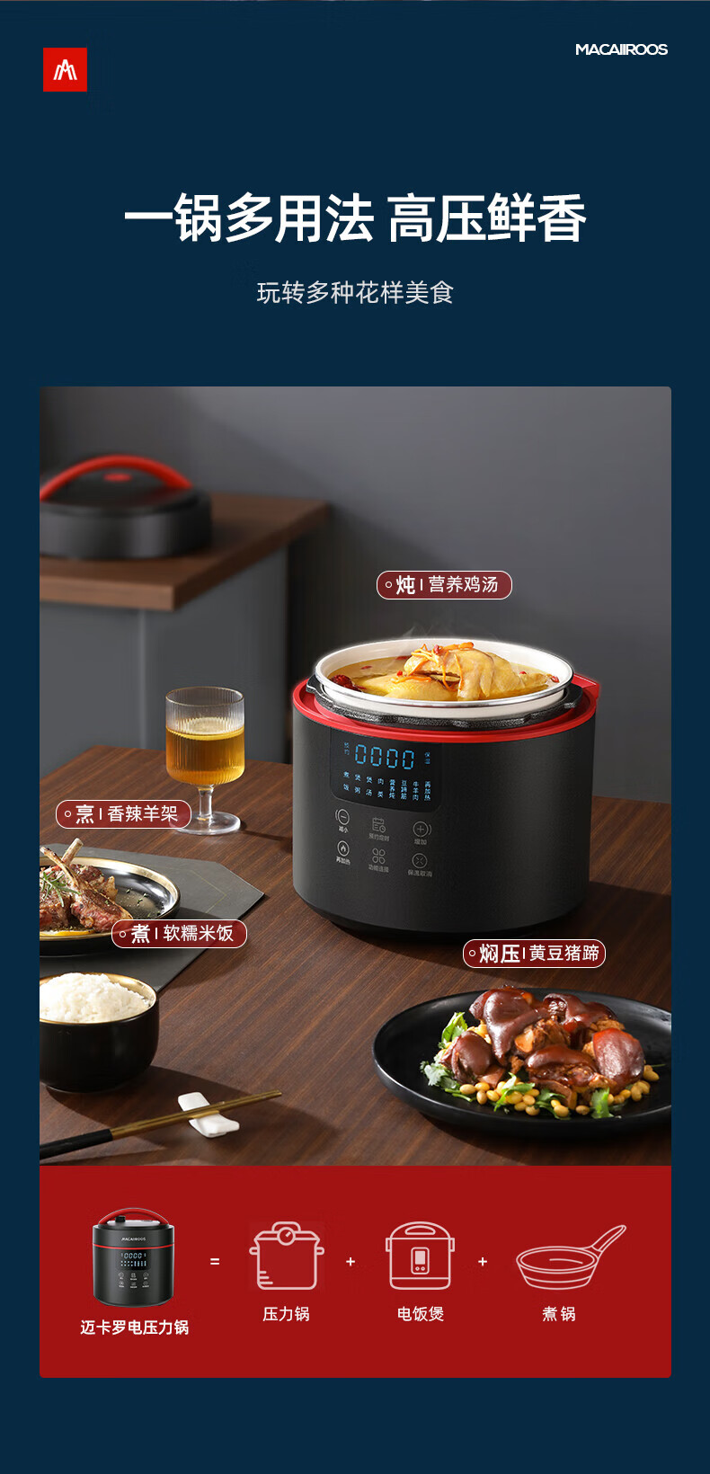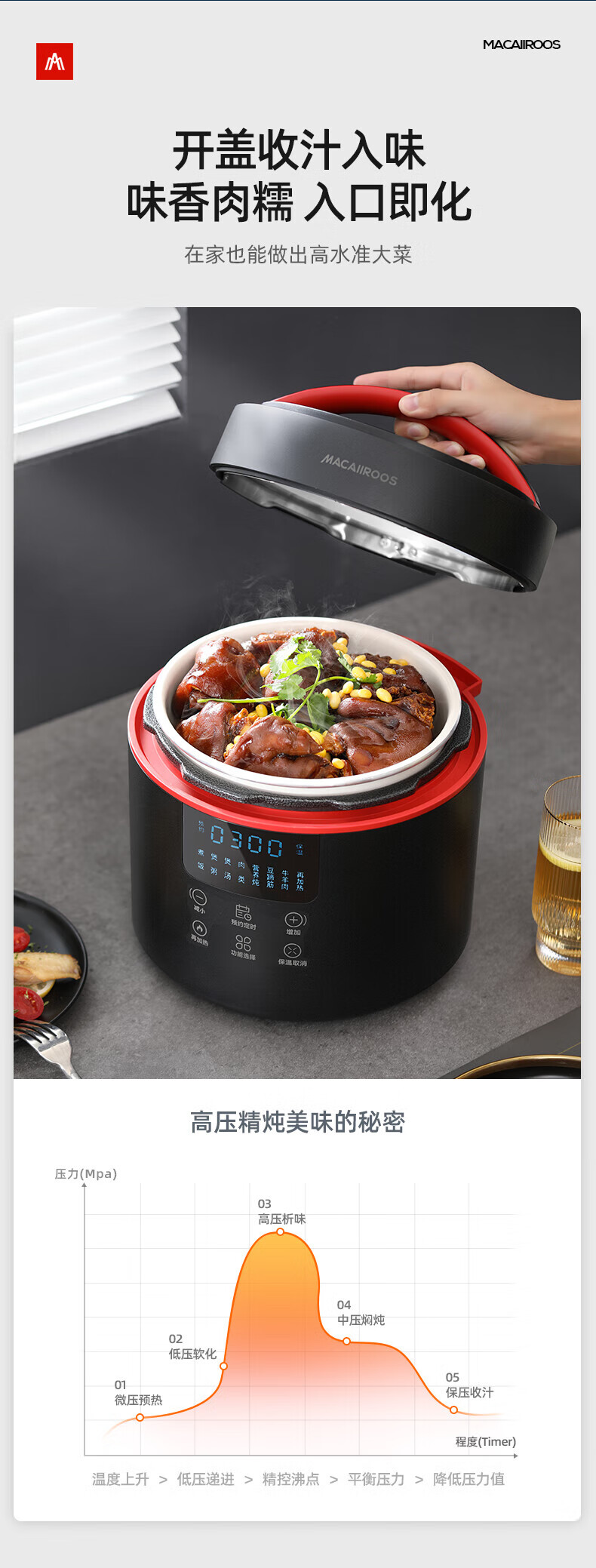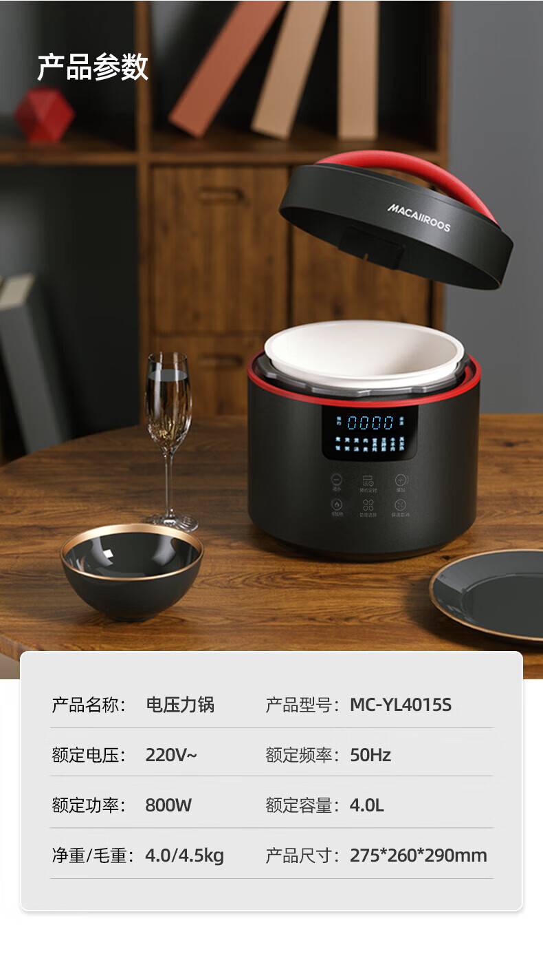 【小家电】迈卡罗MC-YL4015S电压力锅4L高压锅家用多功能电饭锅大容量电饭煲可预约汤锅HF