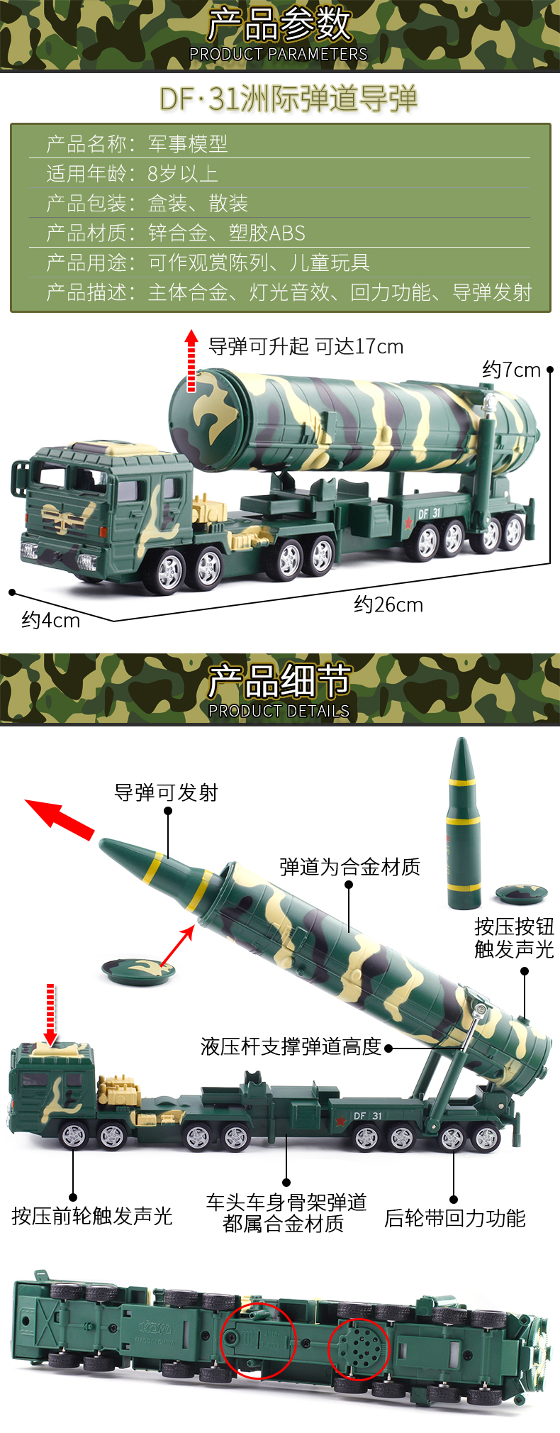 凯迪威KDW 东风31A洲际弹道导弹发射车(1:64) 685051