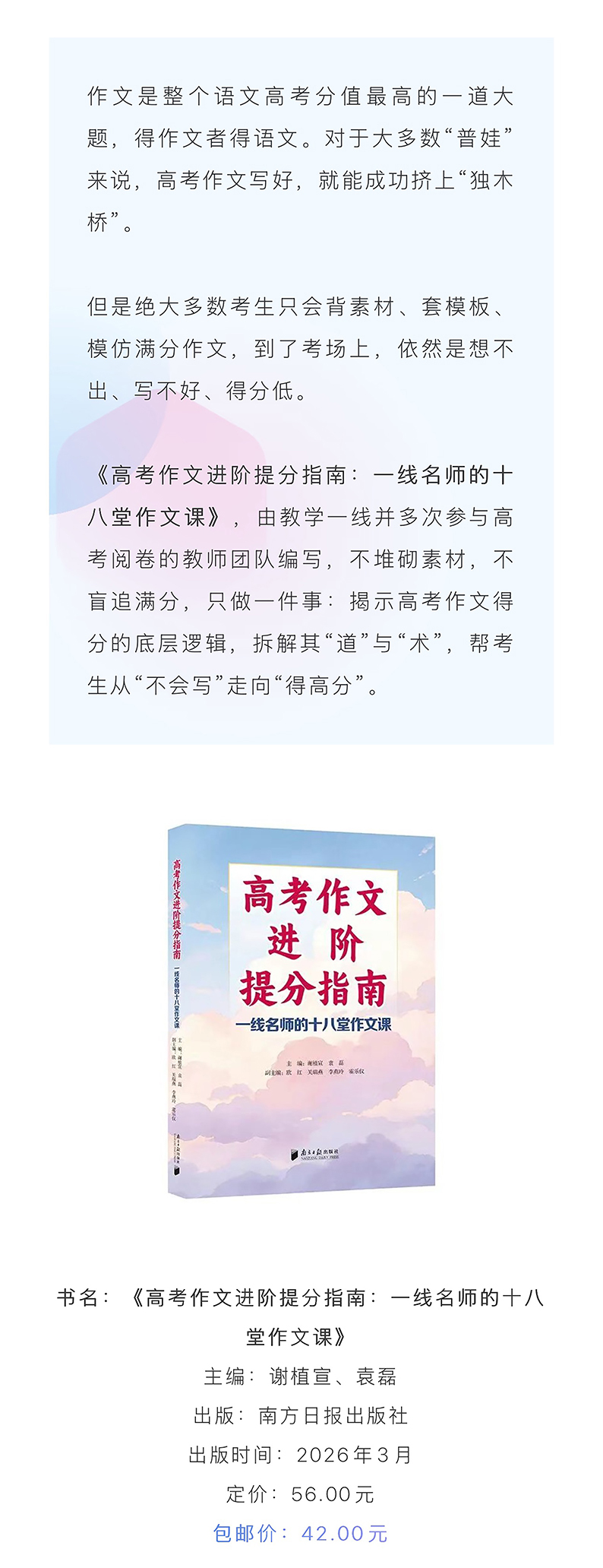《高考作文进阶提分指南:一线名师的十八堂作文课》南方日报出版社出品