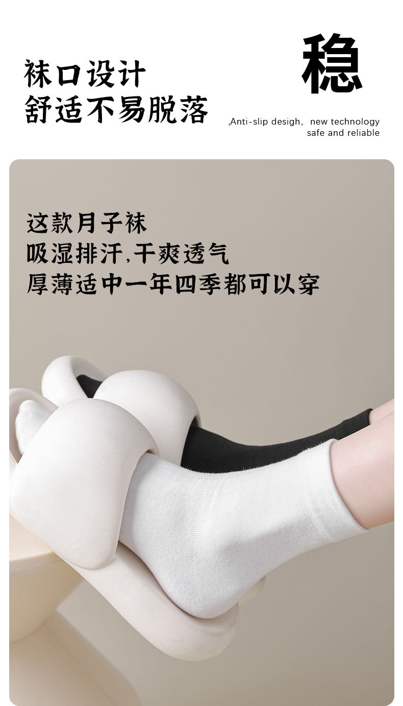 抗起球纯棉袜子女春秋季薄款吸汗防臭中筒无骨袜月子袜白色堆堆袜 商品图5