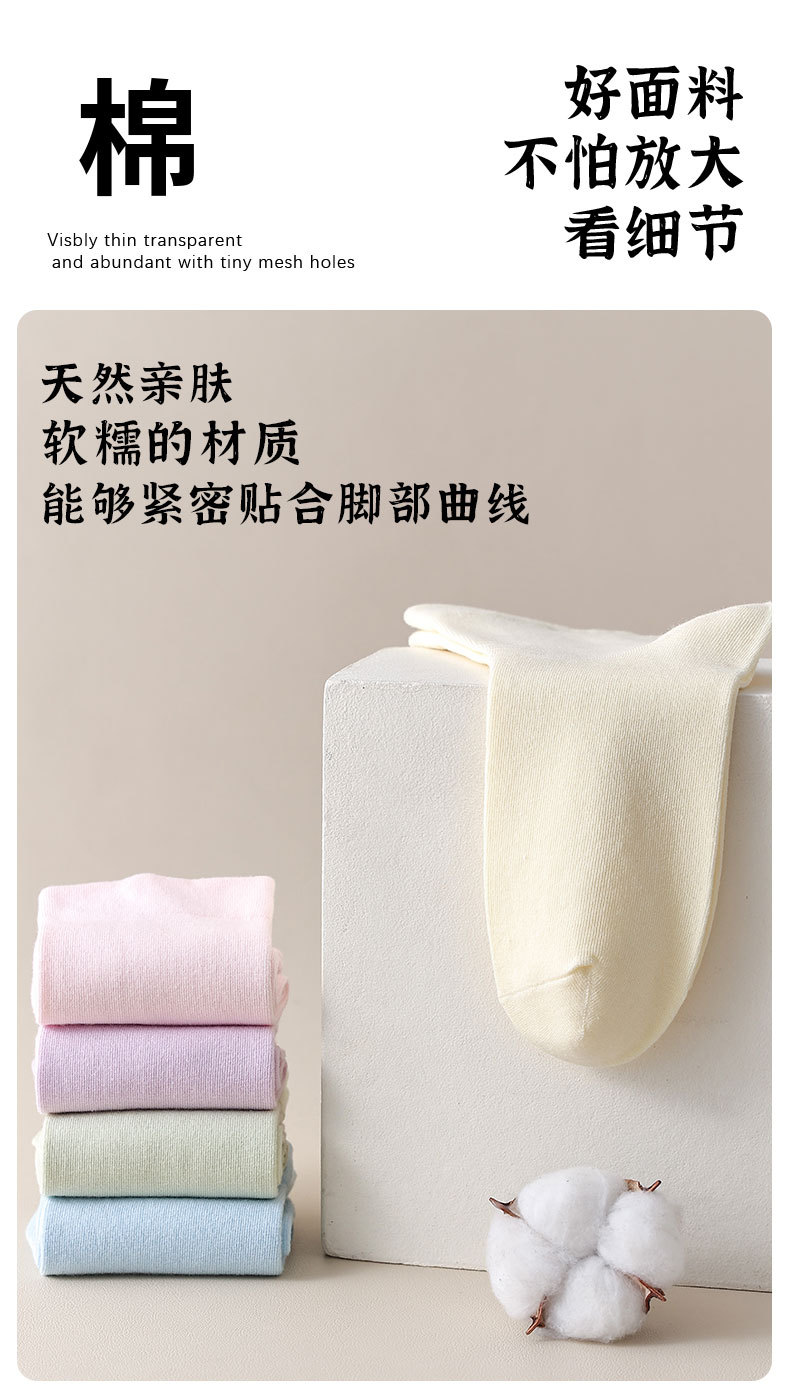 抗起球纯棉袜子女春秋季薄款吸汗防臭中筒无骨袜月子袜白色堆堆袜 商品图4