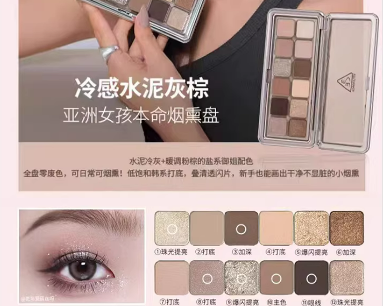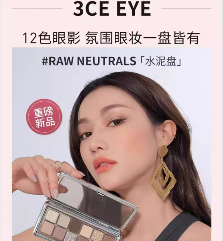3CE-12色眼影# raw neutrals 水泥盘/# motion frame 杏粉盘 QM