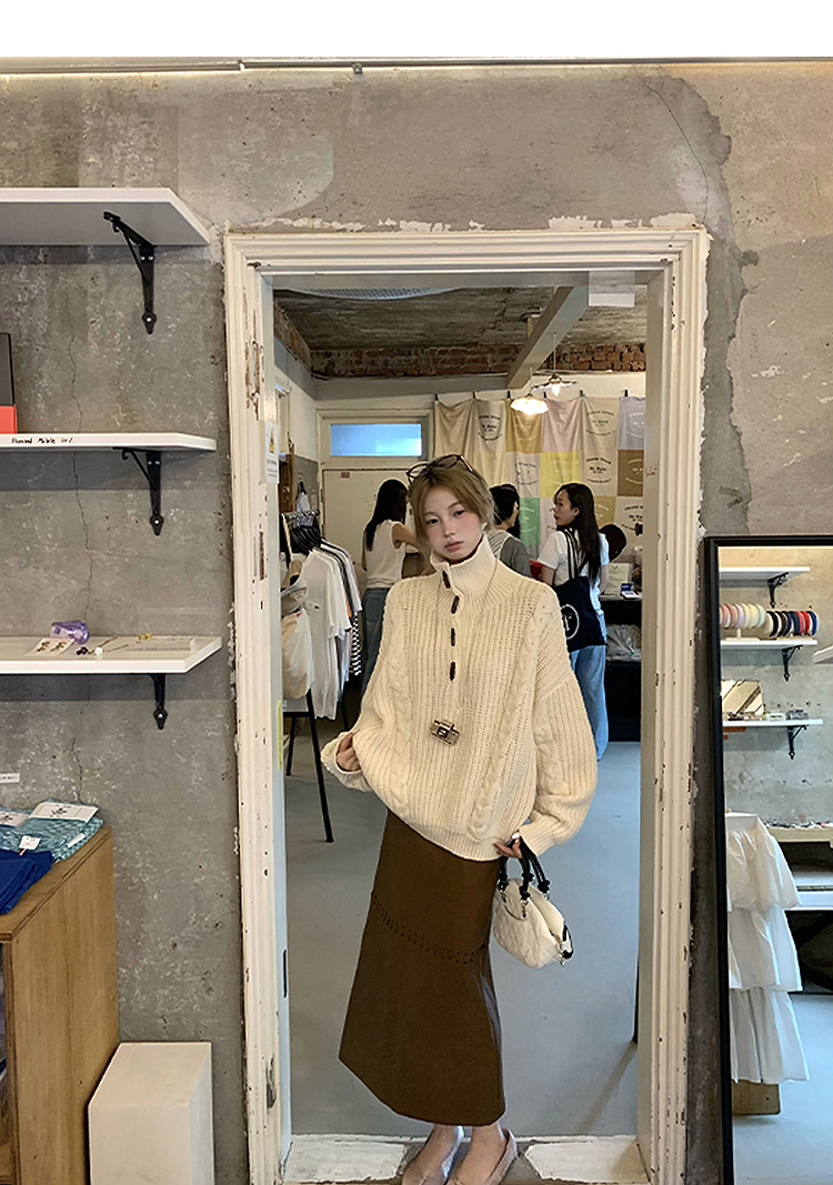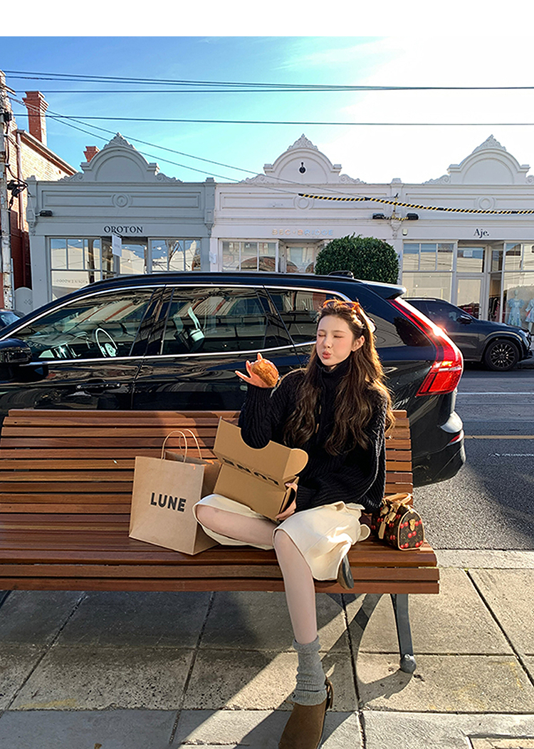 西遇高领毛衣慵懒高级感女新款宽松显瘦套头针织上衣SS051538