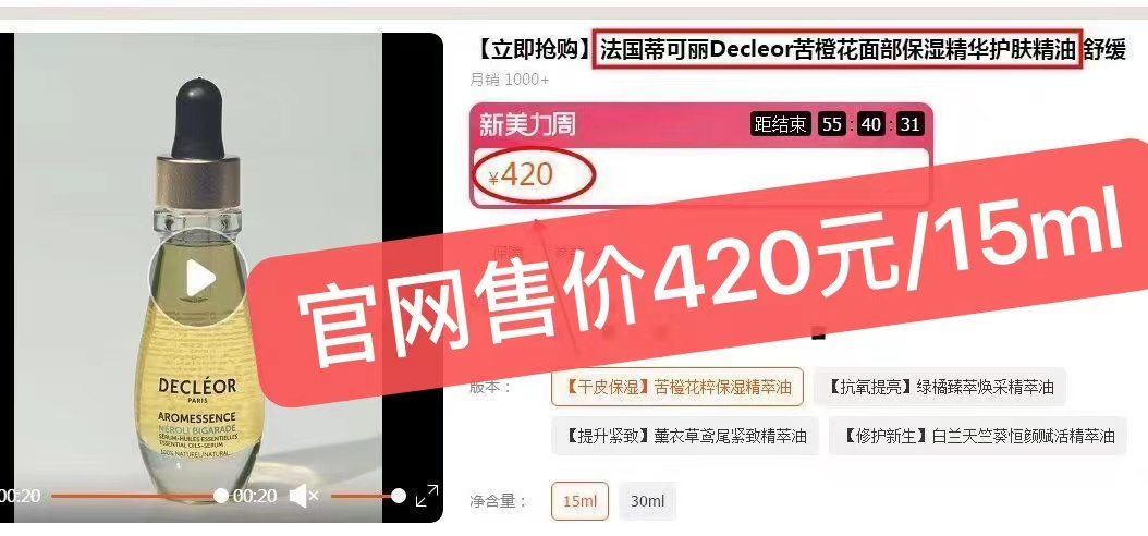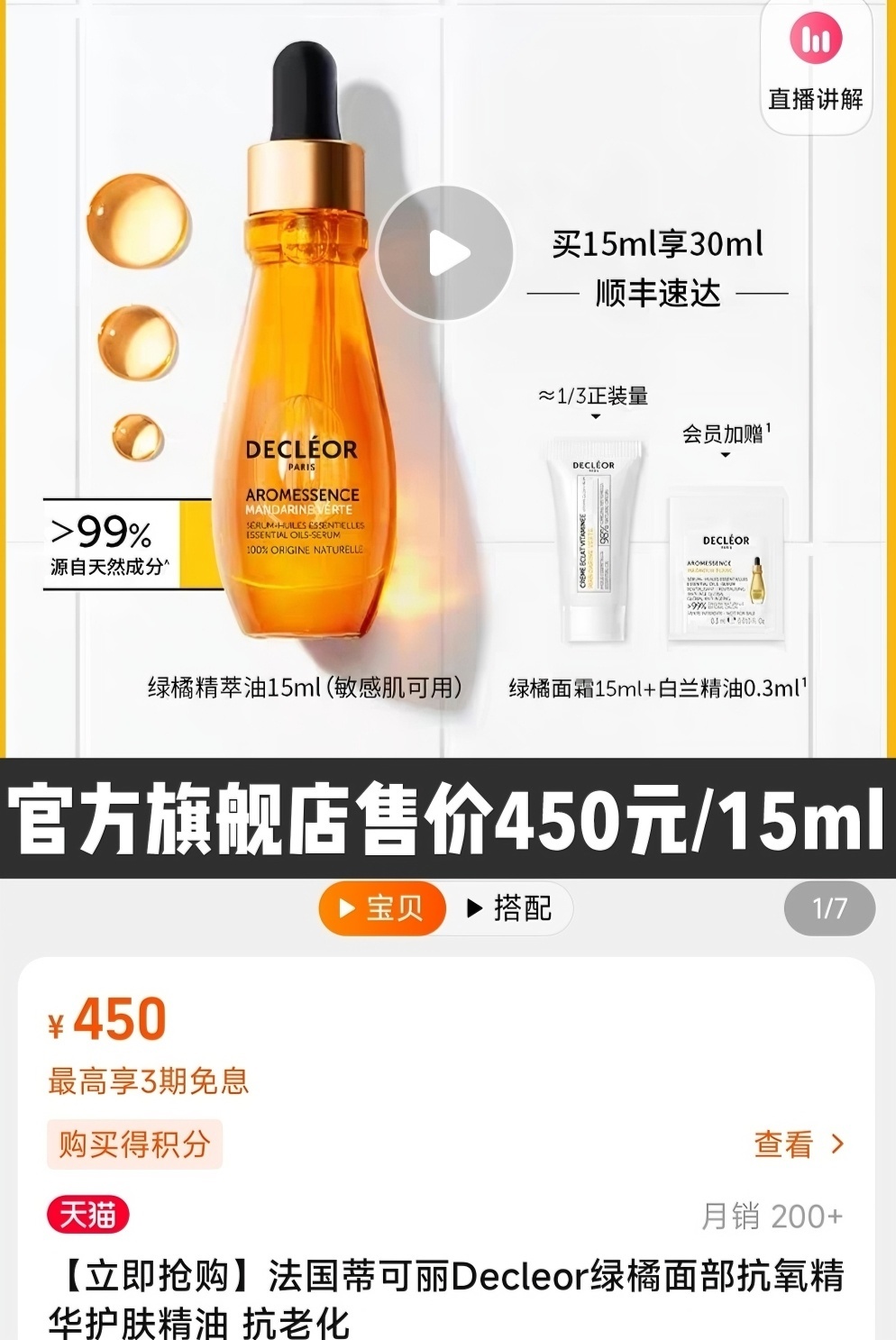 【4.27王炸割肉价】DECLÉOR蒂可丽苦橙花粹保湿精粹油4ml*3(效期至25.5)/绿橘臻萃焕采精华油4ml*3(效期至24.12)