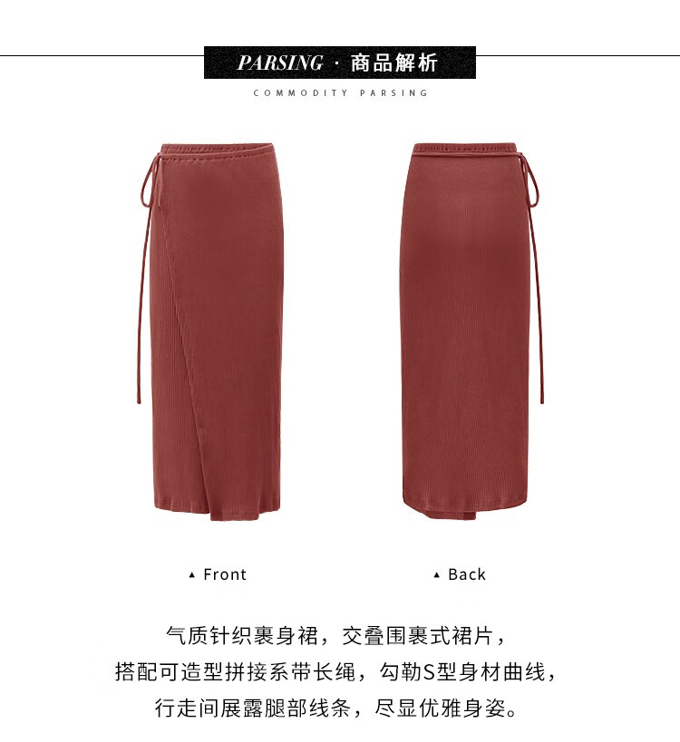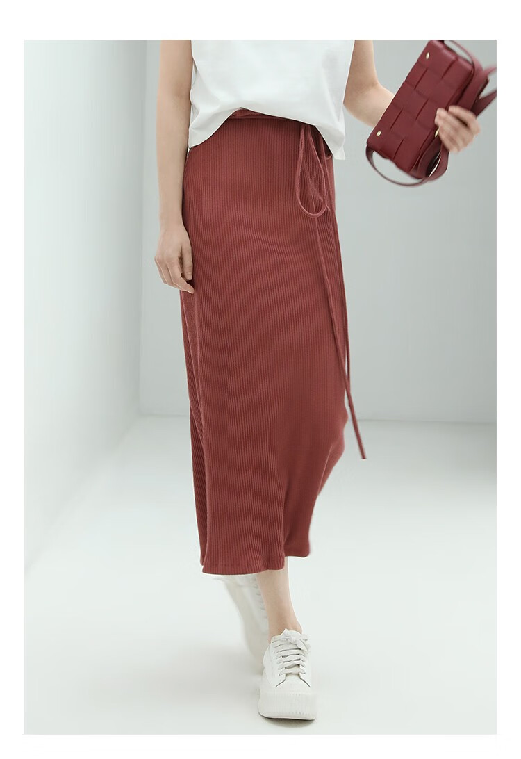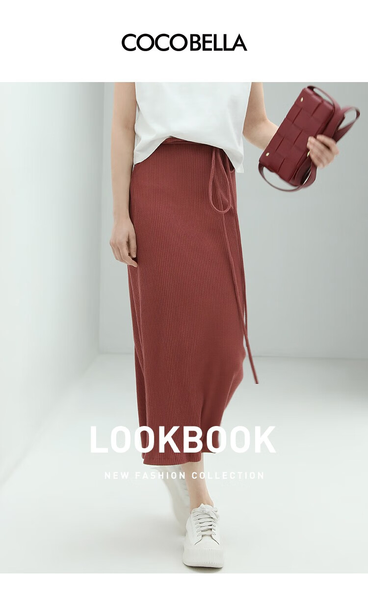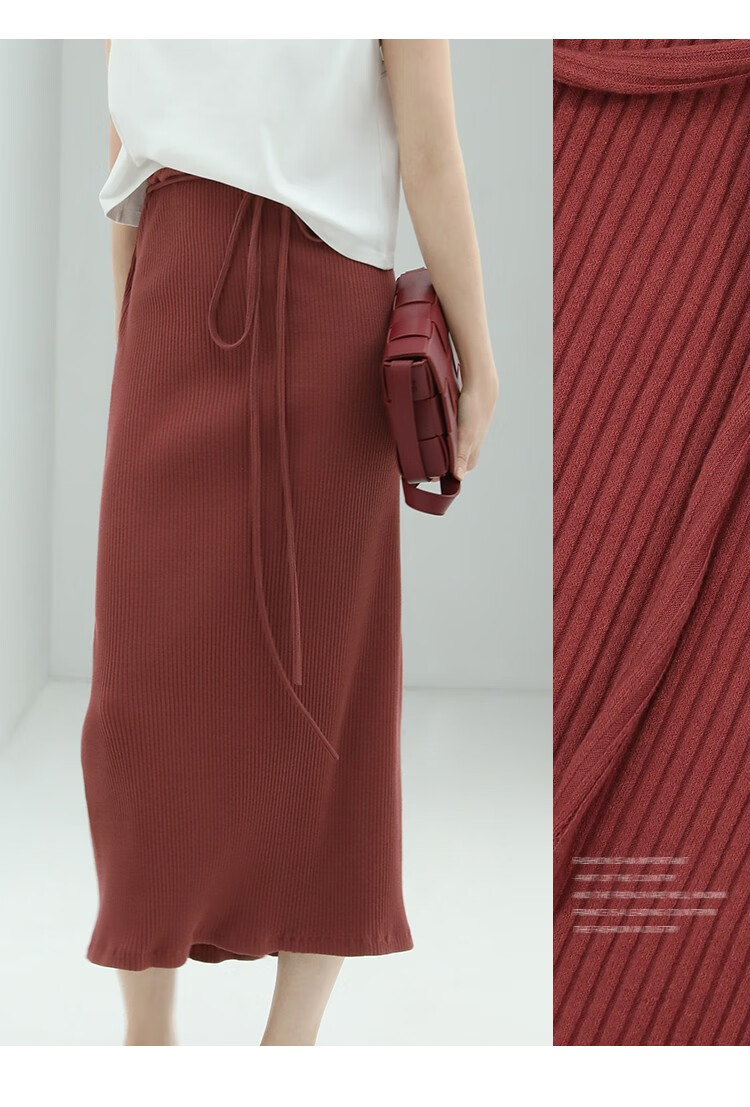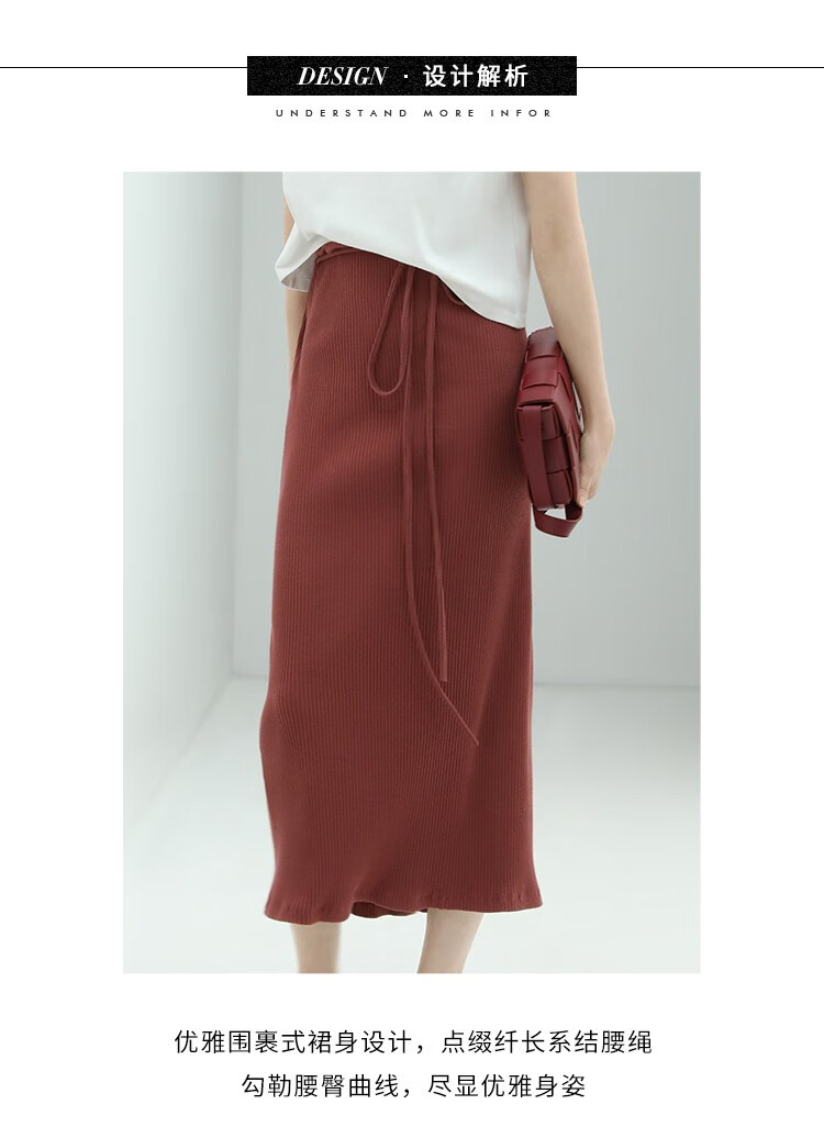 COCOBELLA围裹式针织坑条半身裙垂坠弹力通勤气质长裙HS609B