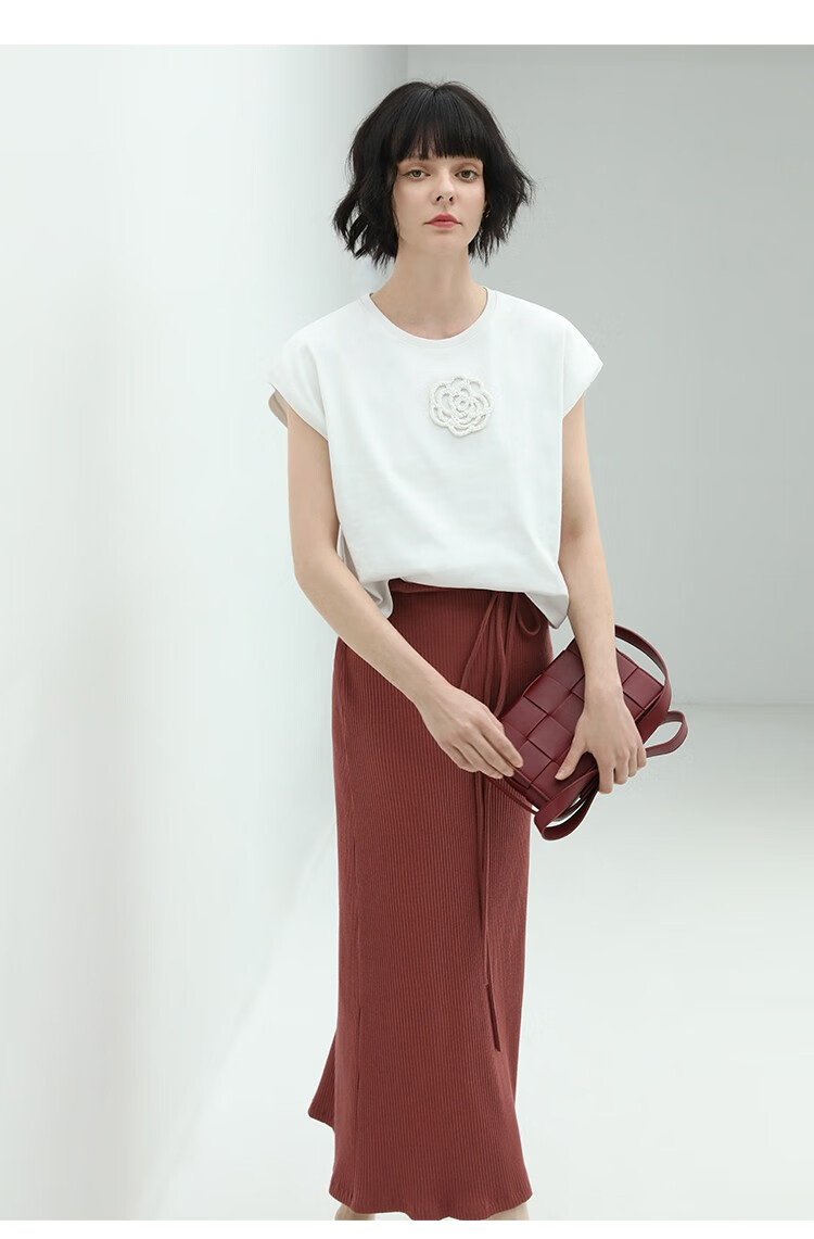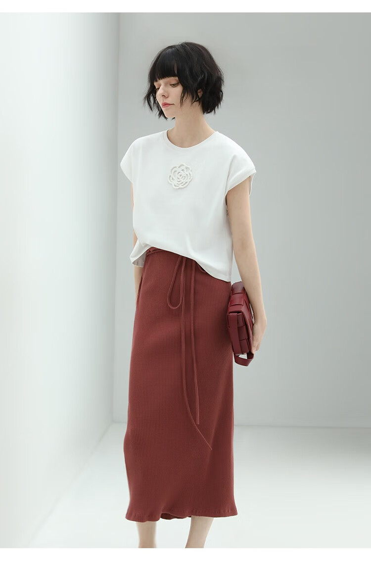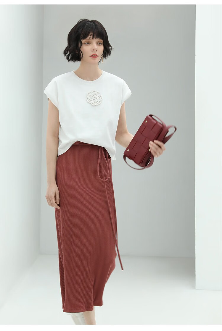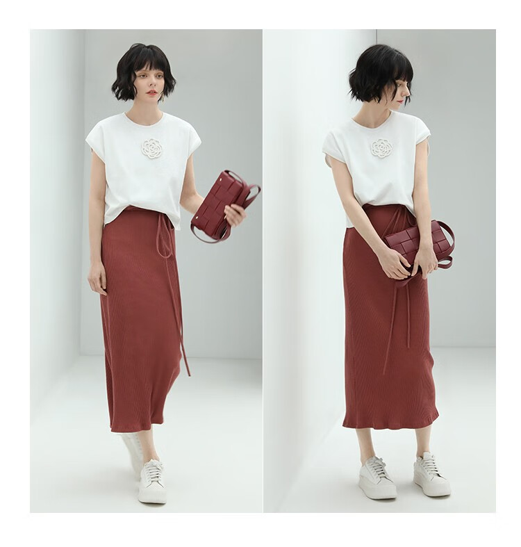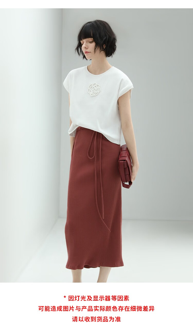 COCOBELLA围裹式针织坑条半身裙垂坠弹力通勤气质长裙HS609B