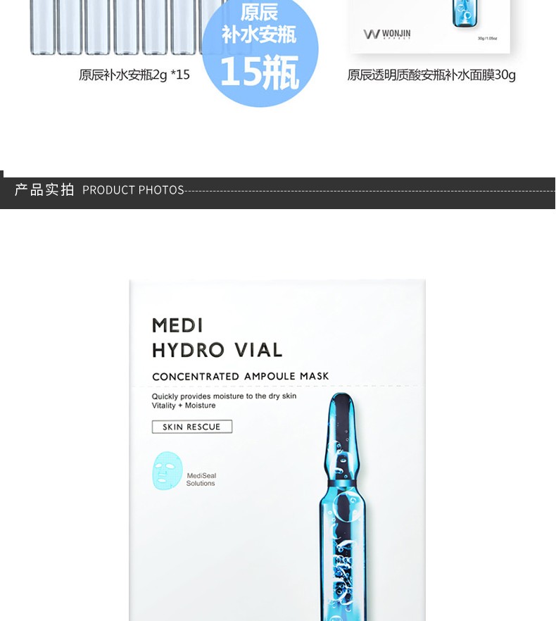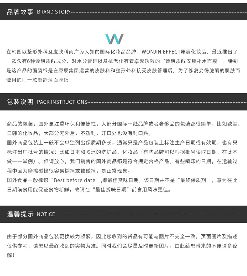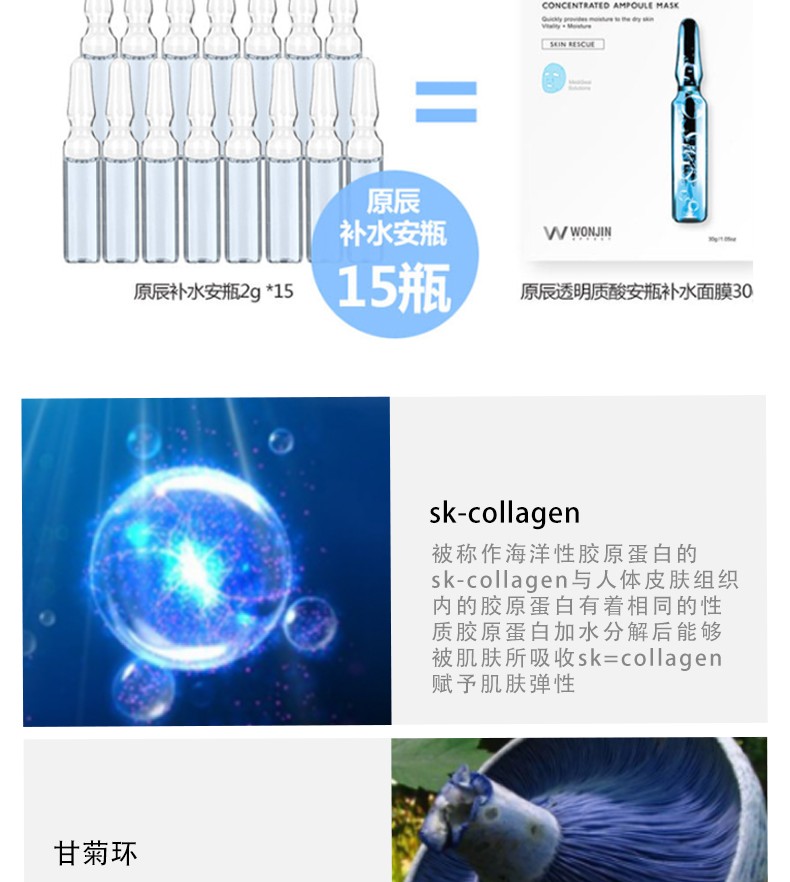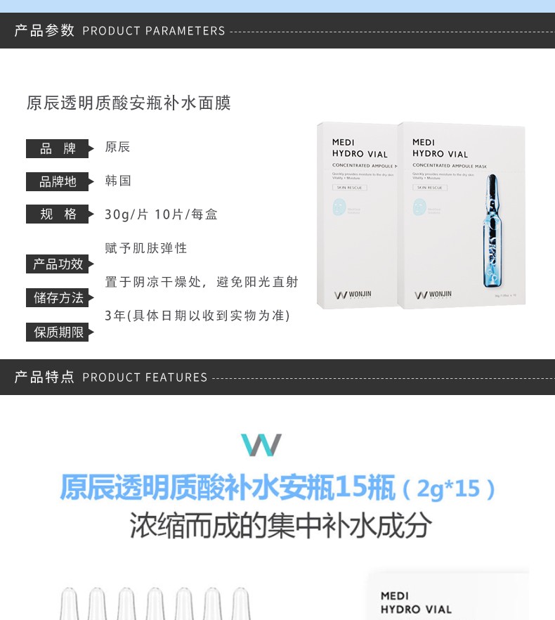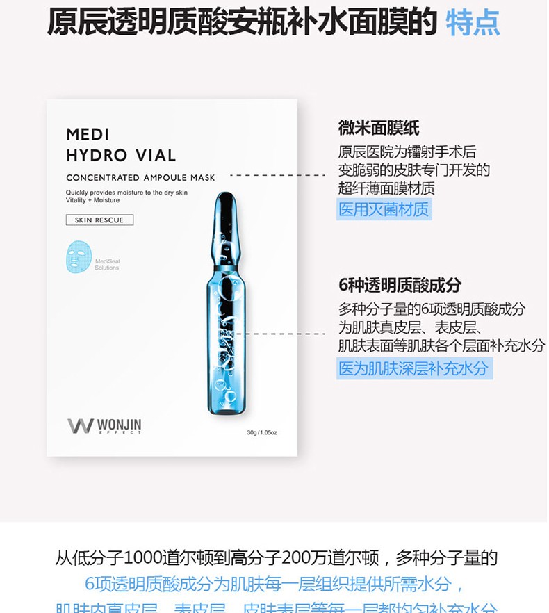 WONJIN 原辰 透明质酸安瓶补水面膜 10片装 韩国