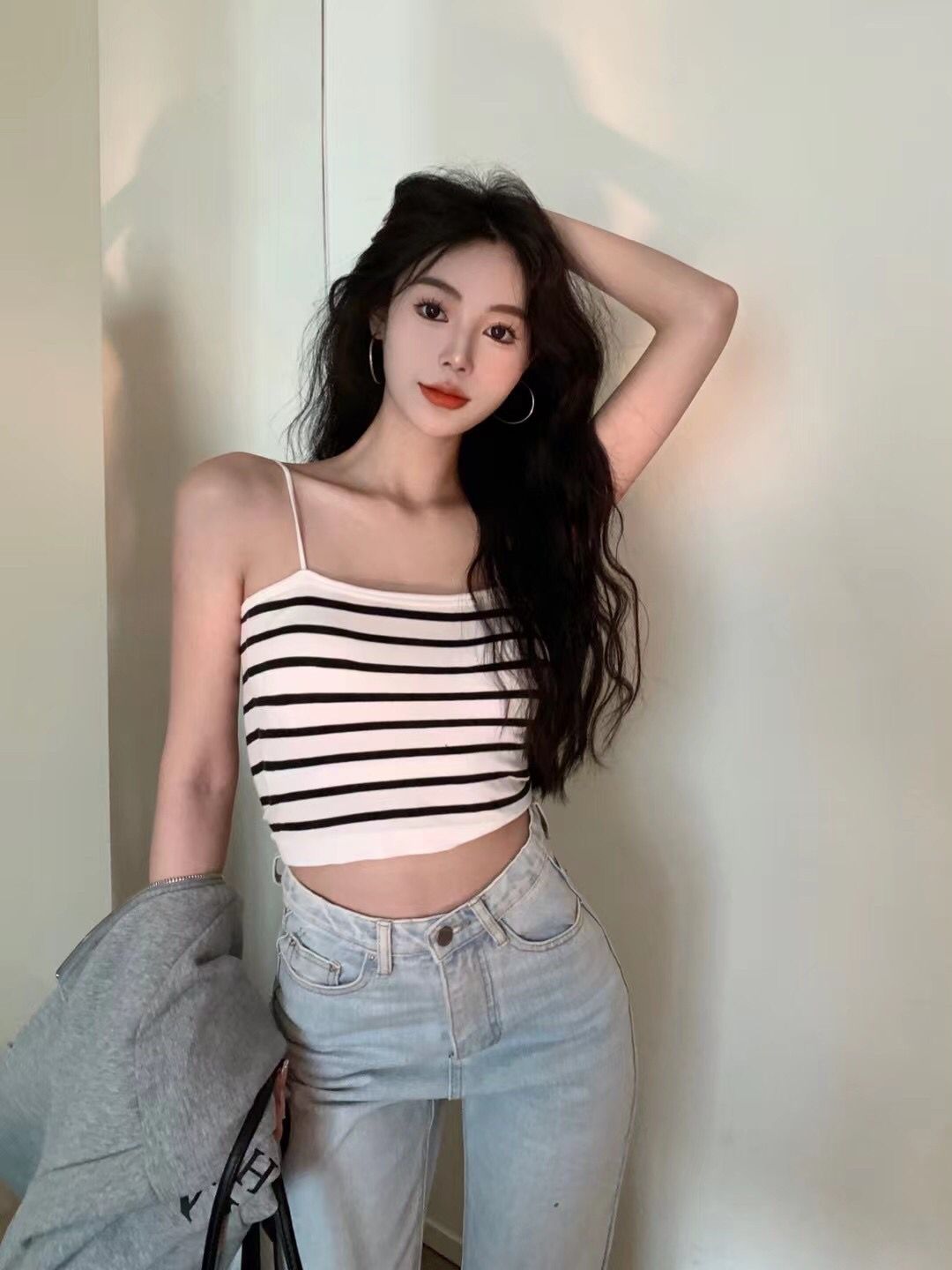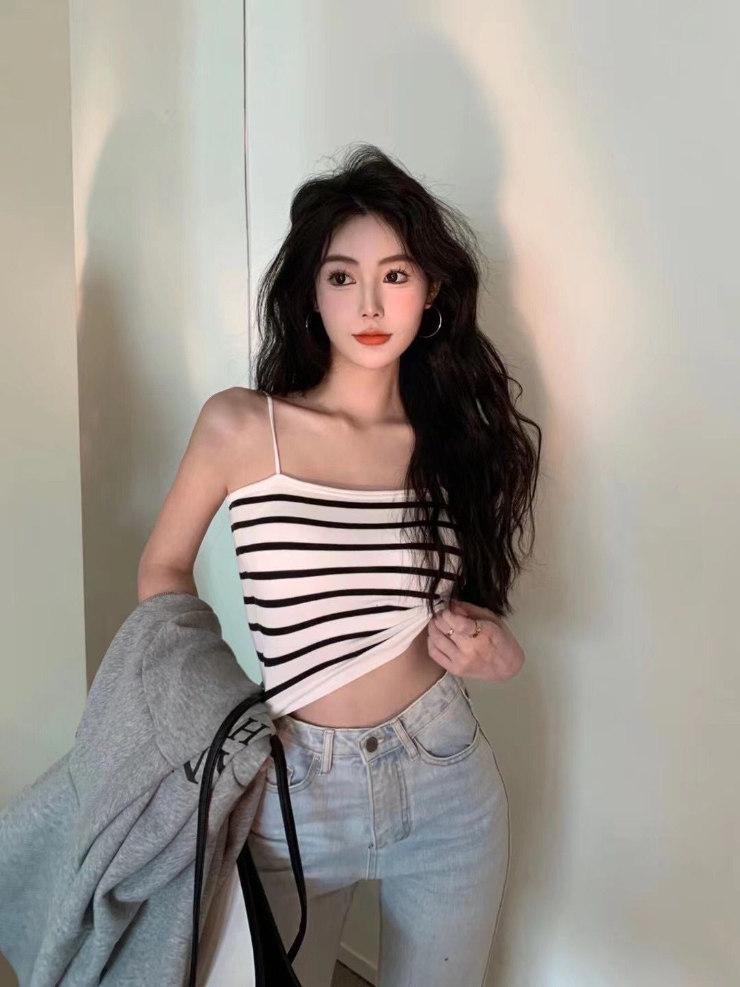 不知道穿什么的时候!一个性感又百搭の条纹吊带来搭配准没错。这次感觉真的遇到了宝藏!臣服于这个颜值怎么穿都是绝绝子~~