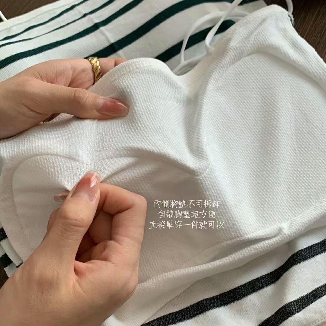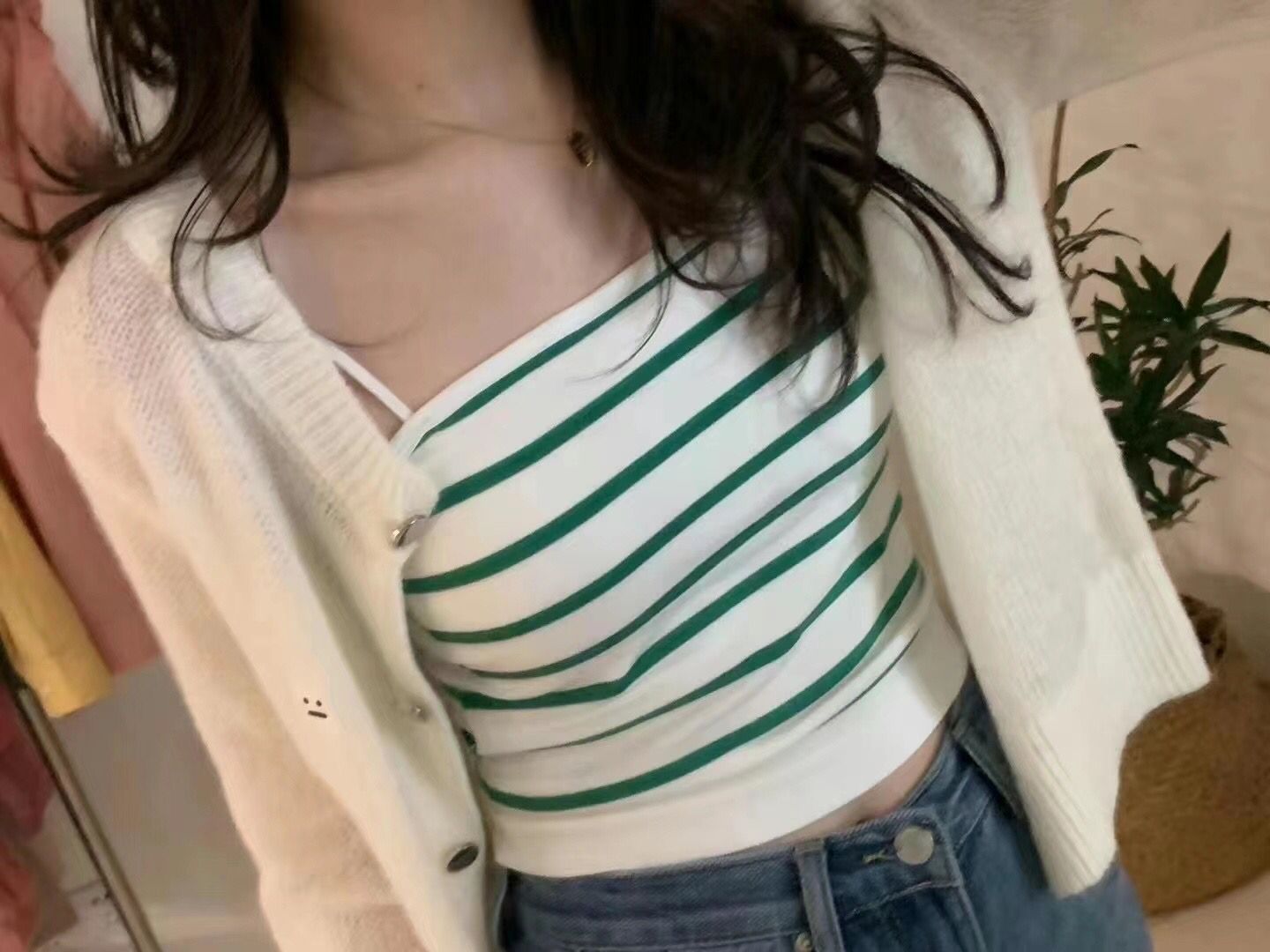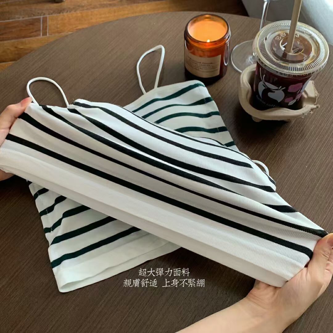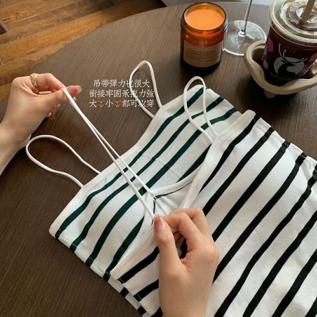 天知道我多爱条纹类的衣服啊!我一定把这款小吊带推给你们!韩系吊带式美背舒适百搭,吊带风格设计免穿Bra二合一。解决你想要的所有美背的需求