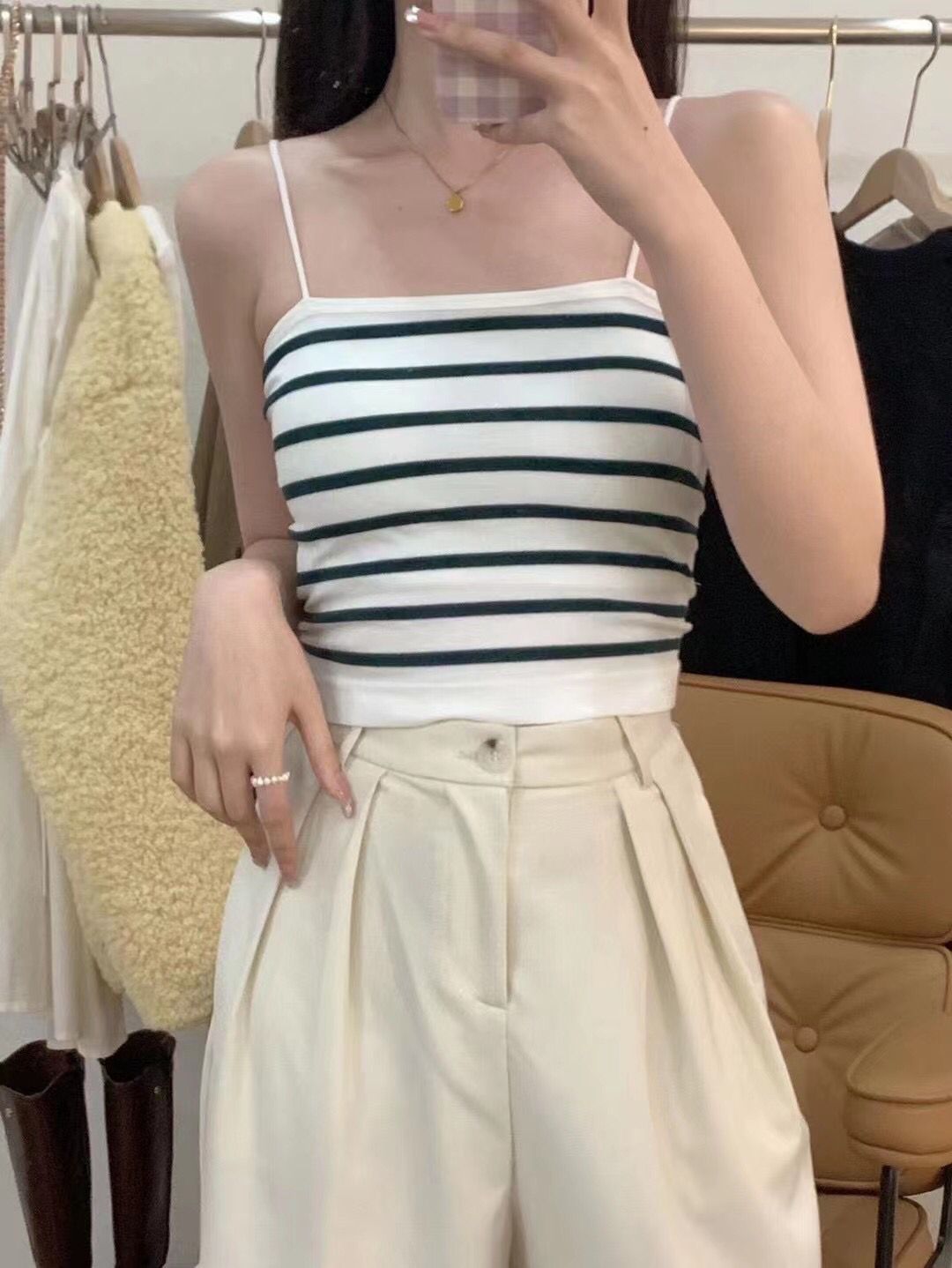 【39.9选2】复古条纹小吊带背心均码(80-130斤)(非质量问题不退不换)