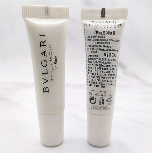宝格丽酒店备品,北京和上海的宝格丽酒店都有这个产品提供,因为宝格丽的合作伙伴众多,所以很多航空公司的头等舱洗漱包里也可以看见这款唇膏,使用率相当广泛。