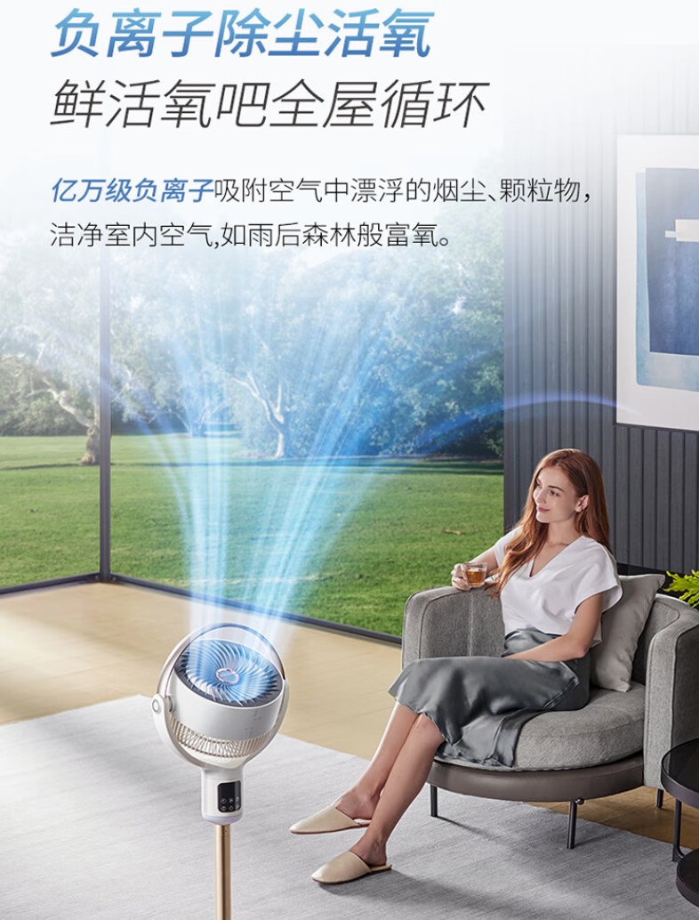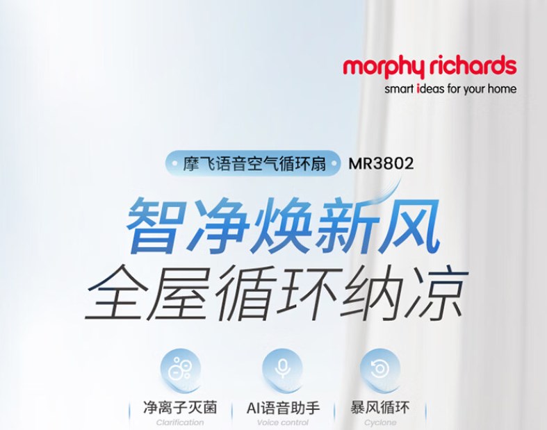 【摩飞负离子净化除菌循环扇】摩飞电器(Morphyrichards)空气循环扇 家用负离子净化除菌语音控制立式落地扇 3D送风柔音直流变频节能摇头电风扇MR3802 MR3802白色