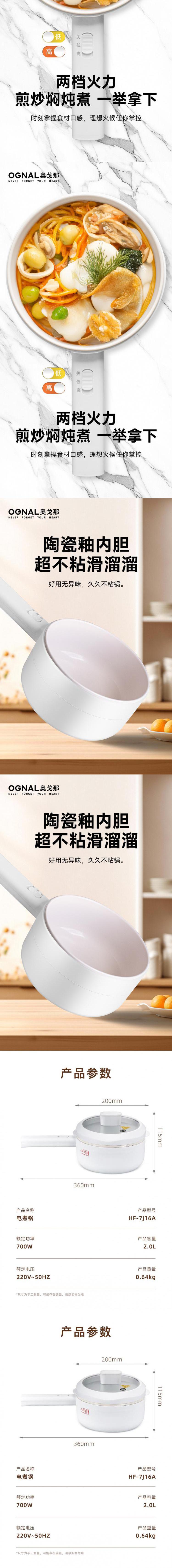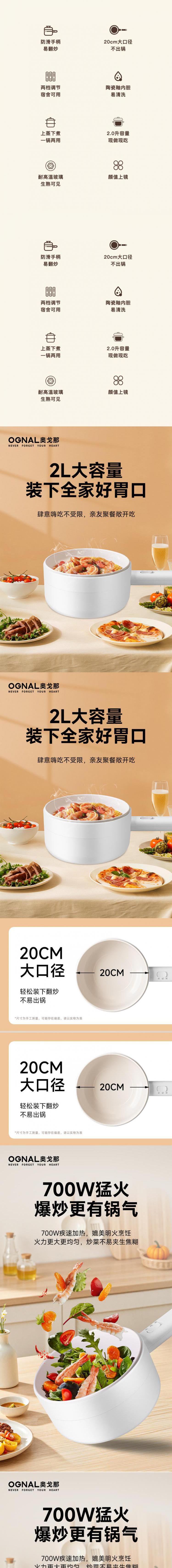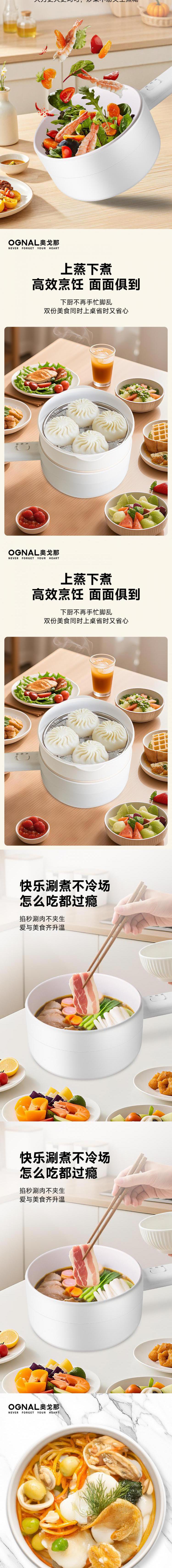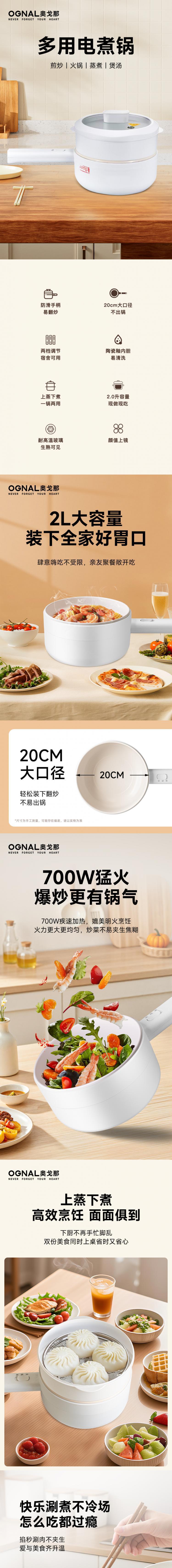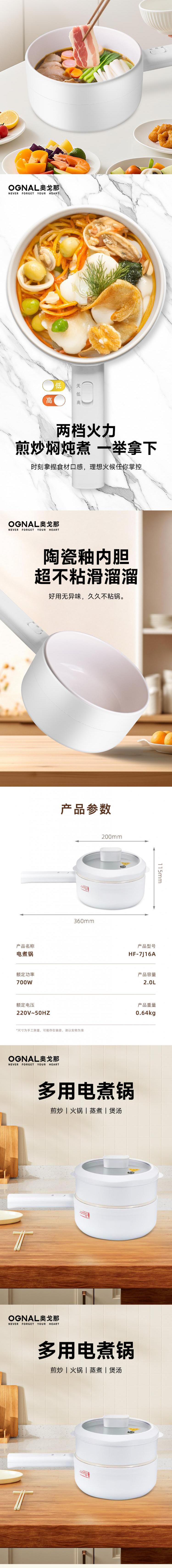 奥戈那 电煮锅小型2-3人用多功能锅一体炒煮煎蒸不粘锅多用迷你家用小电锅学生宿舍用煮面泡面2档调节、带蒸笼HF-7J20A