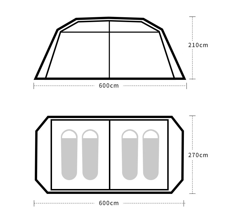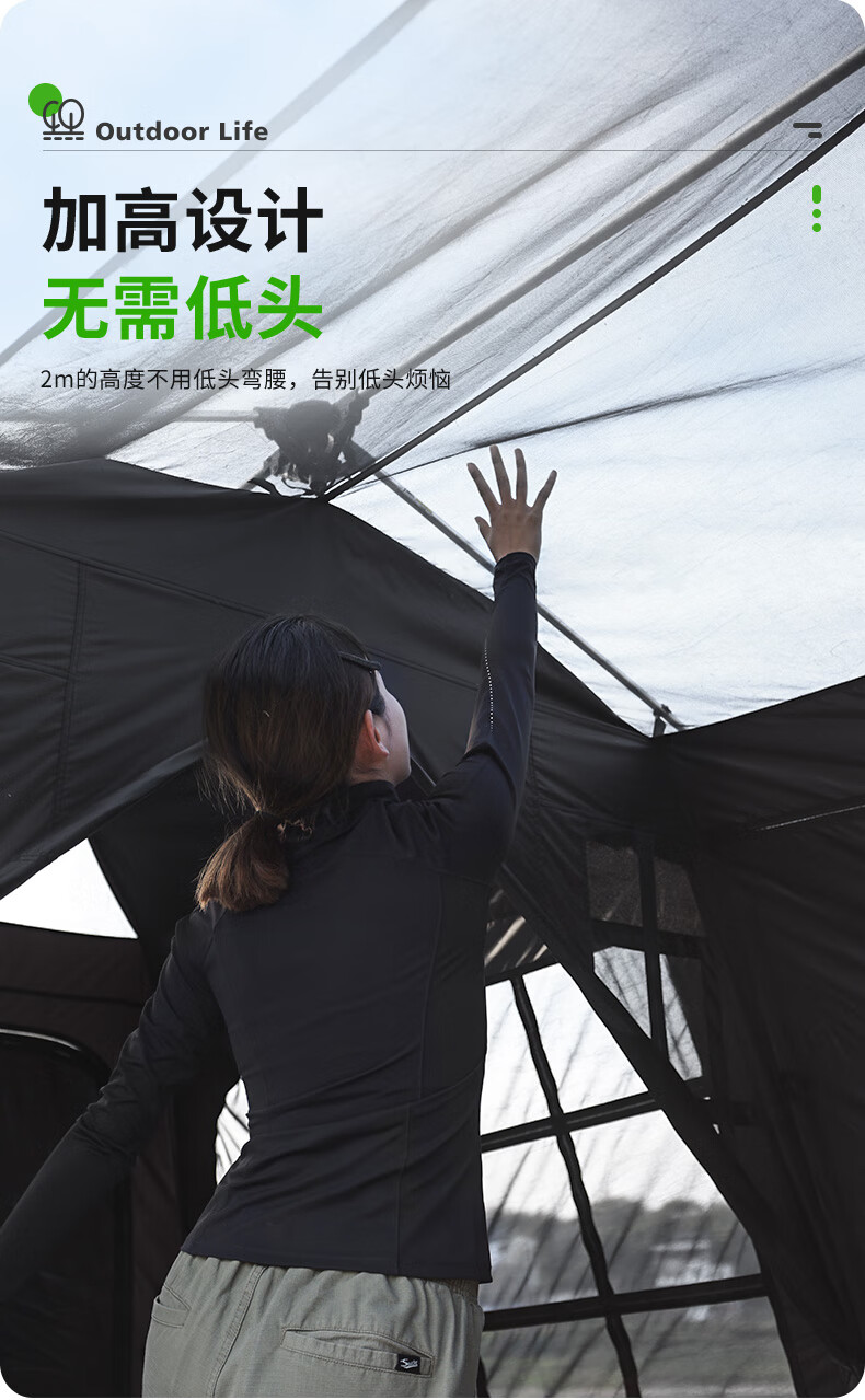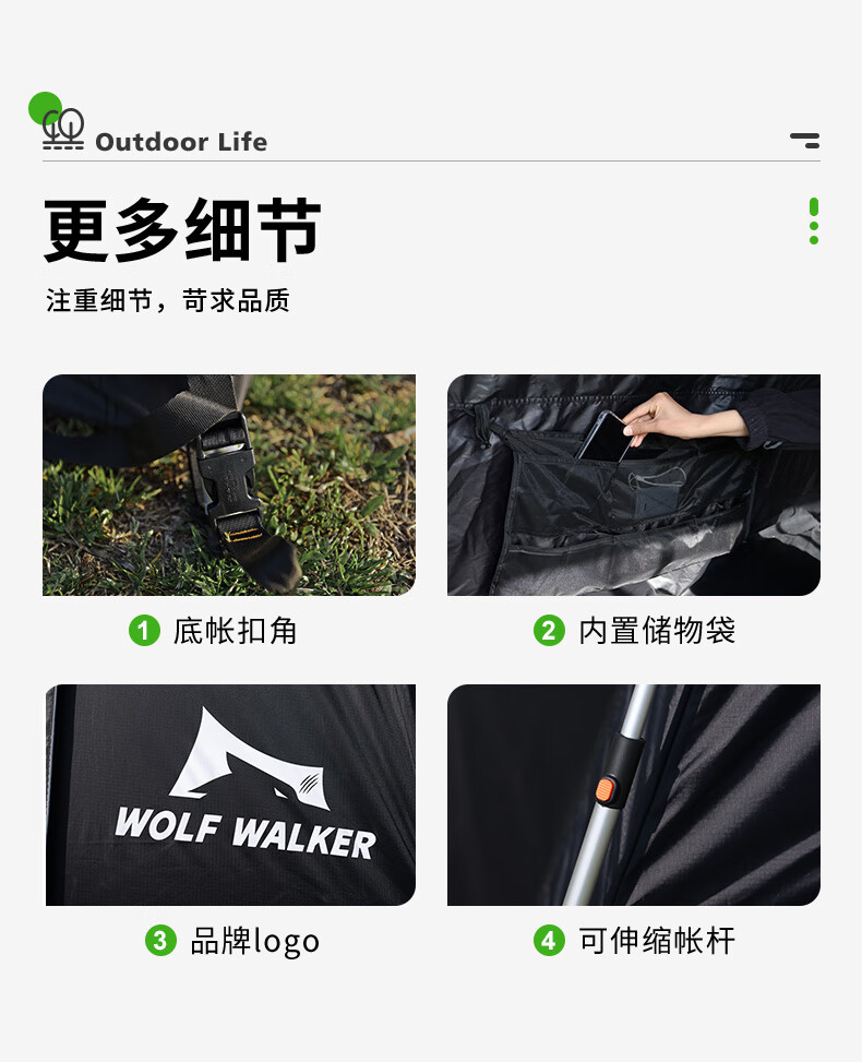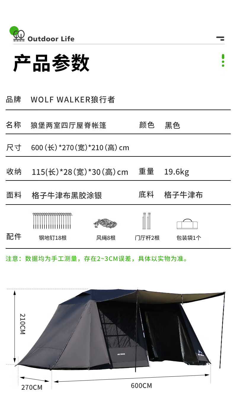 狼行者狼堡屋脊户外露营帐篷速开便携式折叠加厚野营装备全自动两室一厅 黑色