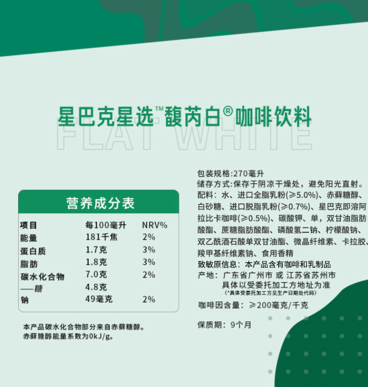 星巴克 星选咖啡 即饮咖啡270ml*15瓶