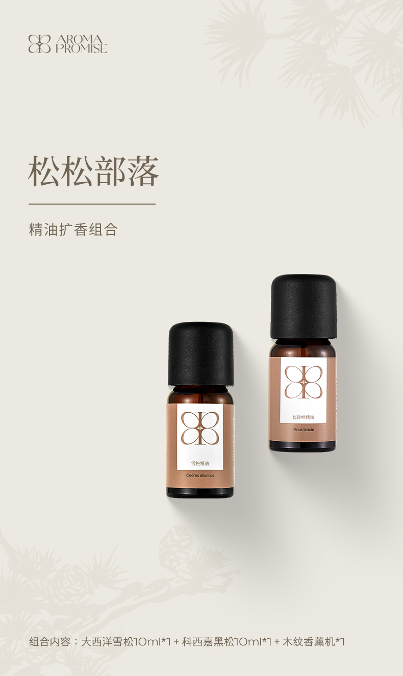 Aroma Promise松松部落套组(大西洋雪松精油10ml+松针叶精油10ml+木纹香薰机)