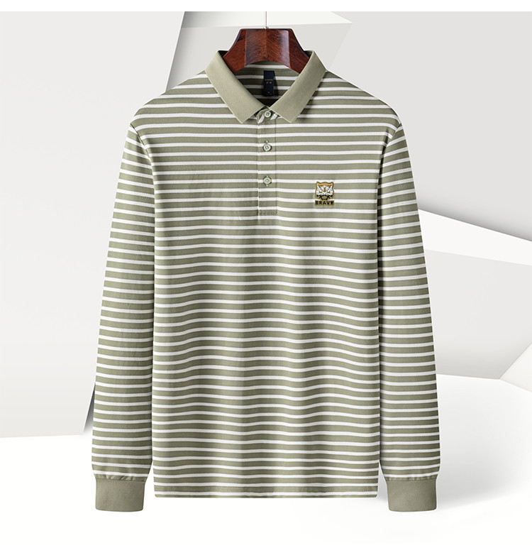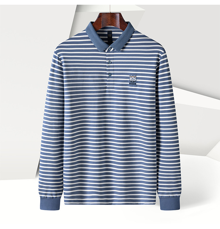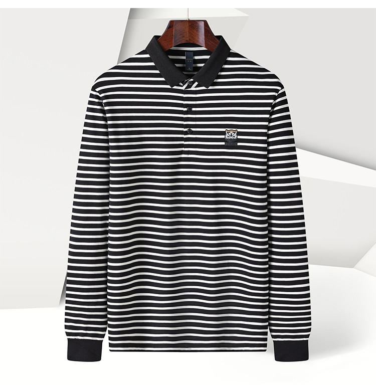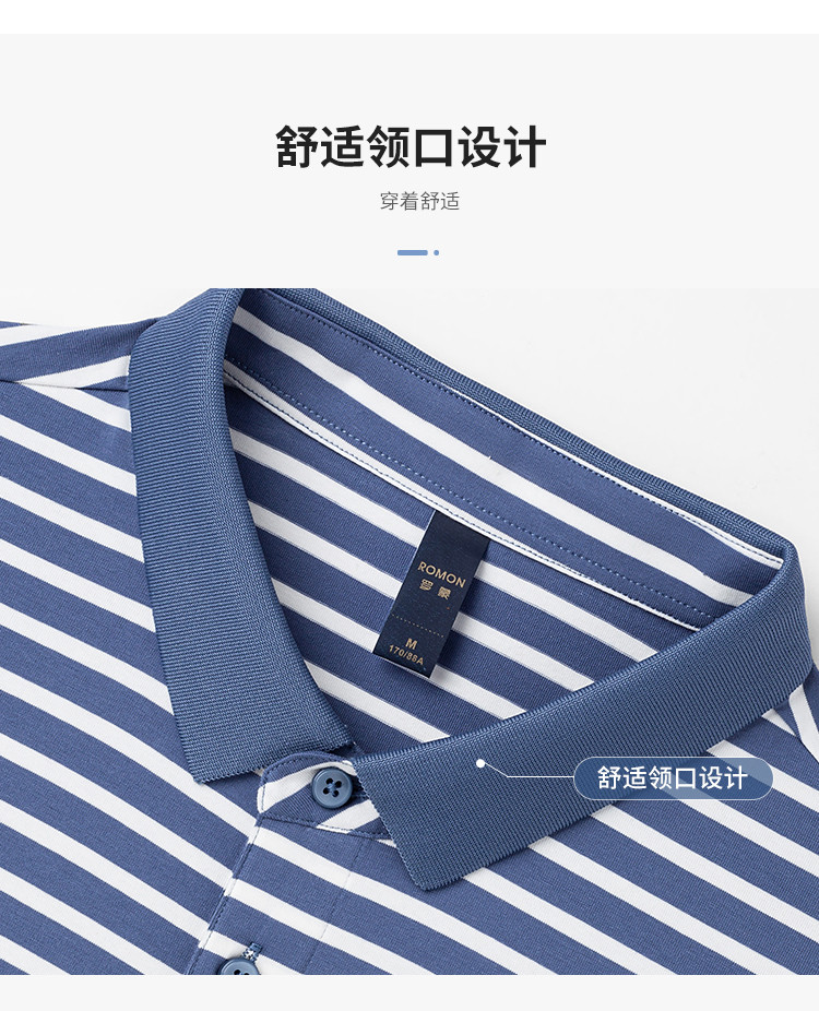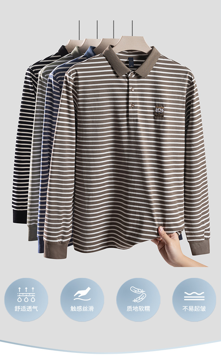 【桑蚕丝混纺】罗蒙春秋男士绣花胸标海魂衫polo衫男长袖男士polo衫长袖