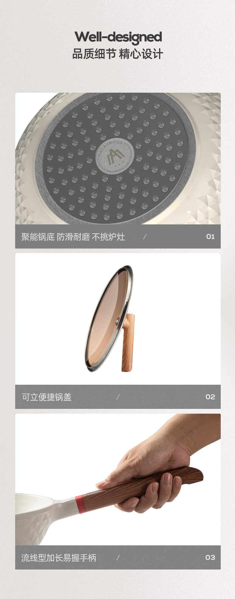 【小家电】迈卡罗MC-C30L1 麦饭石不粘锅家用平底炒菜锅电磁炉煤燃气灶适用 HF
