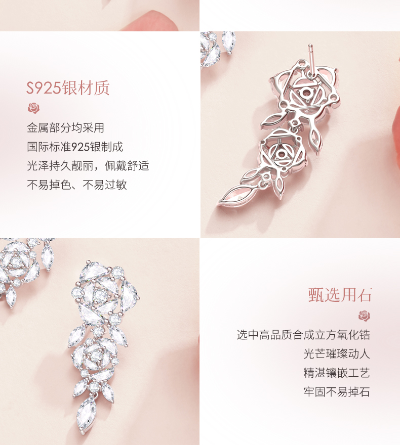 【明星同款】Fanci范琦【玫瑰系列】玫瑰之梦耳钉女925银时尚轻奢小众耳饰