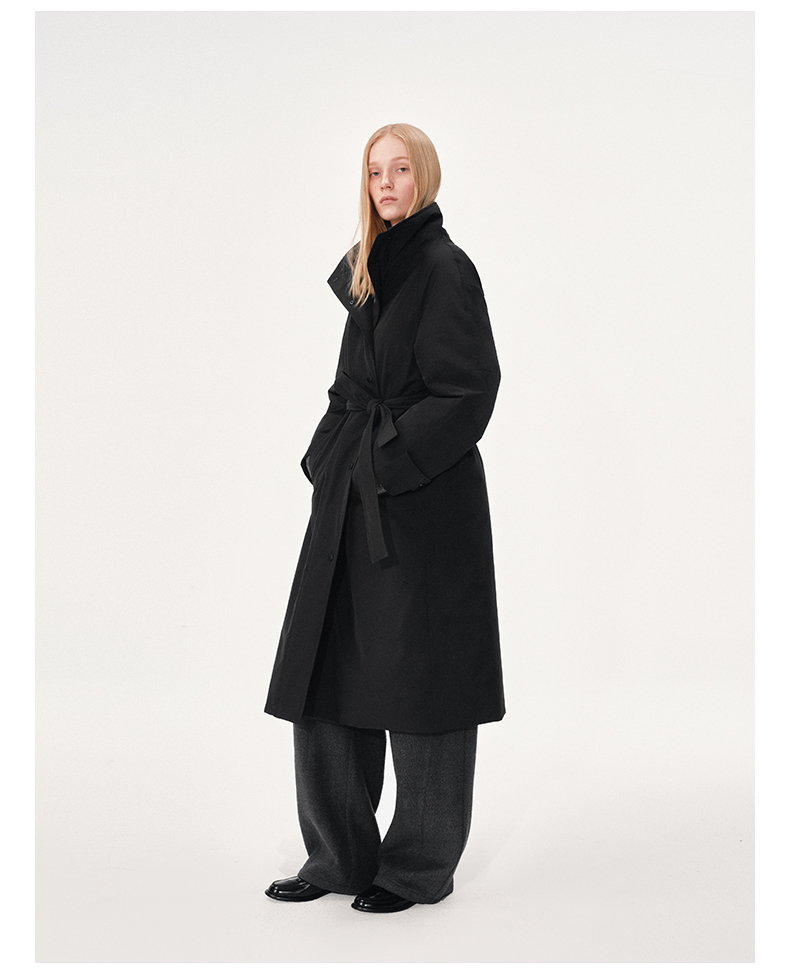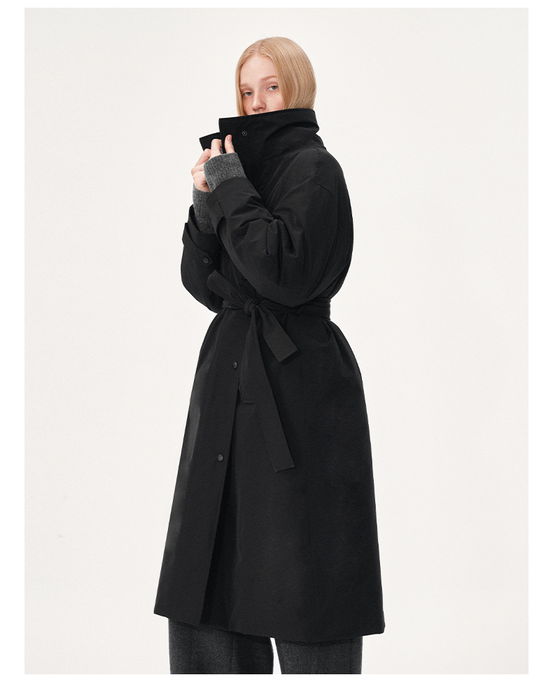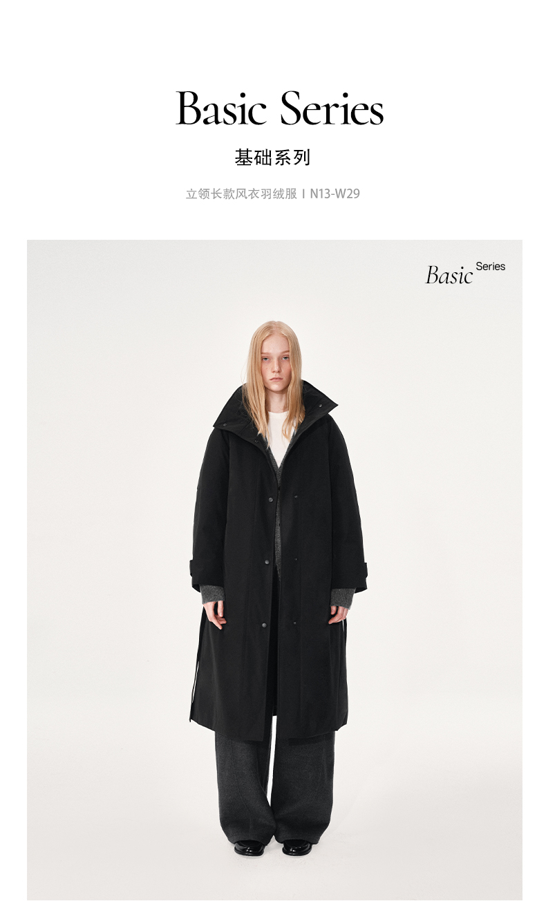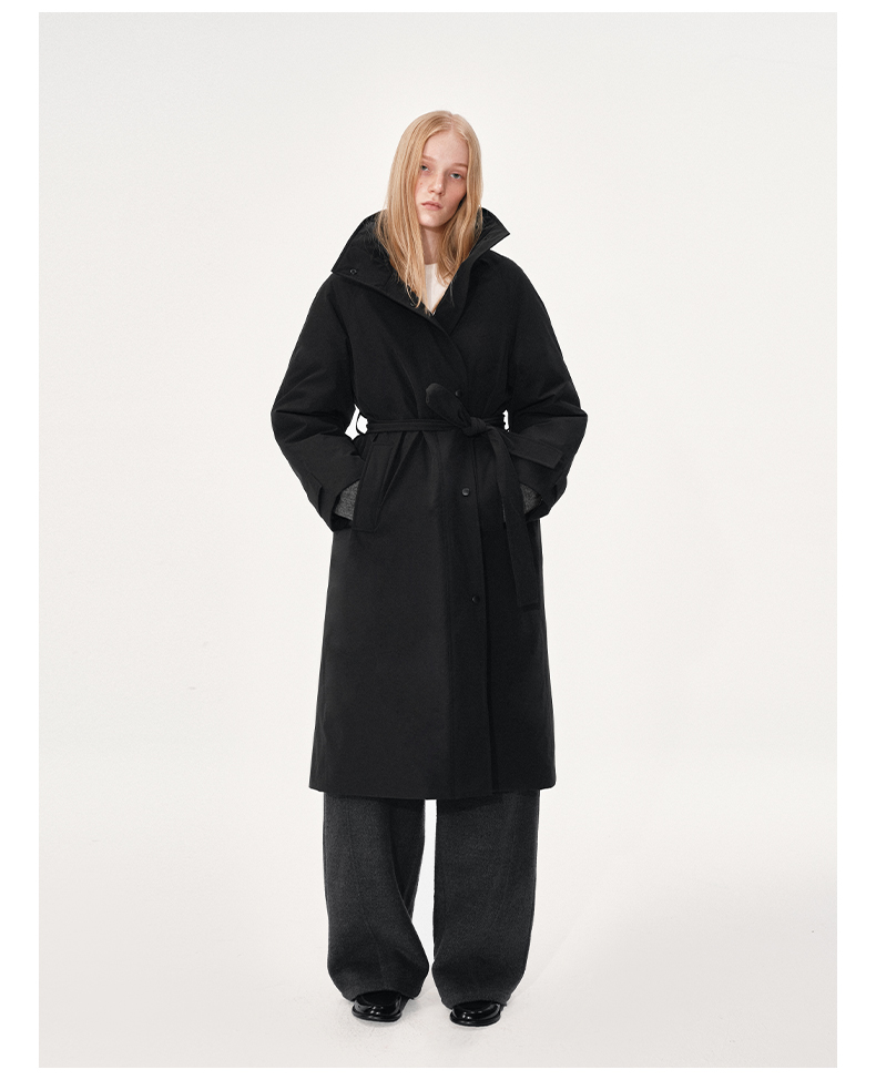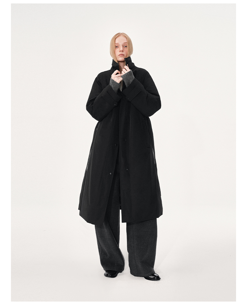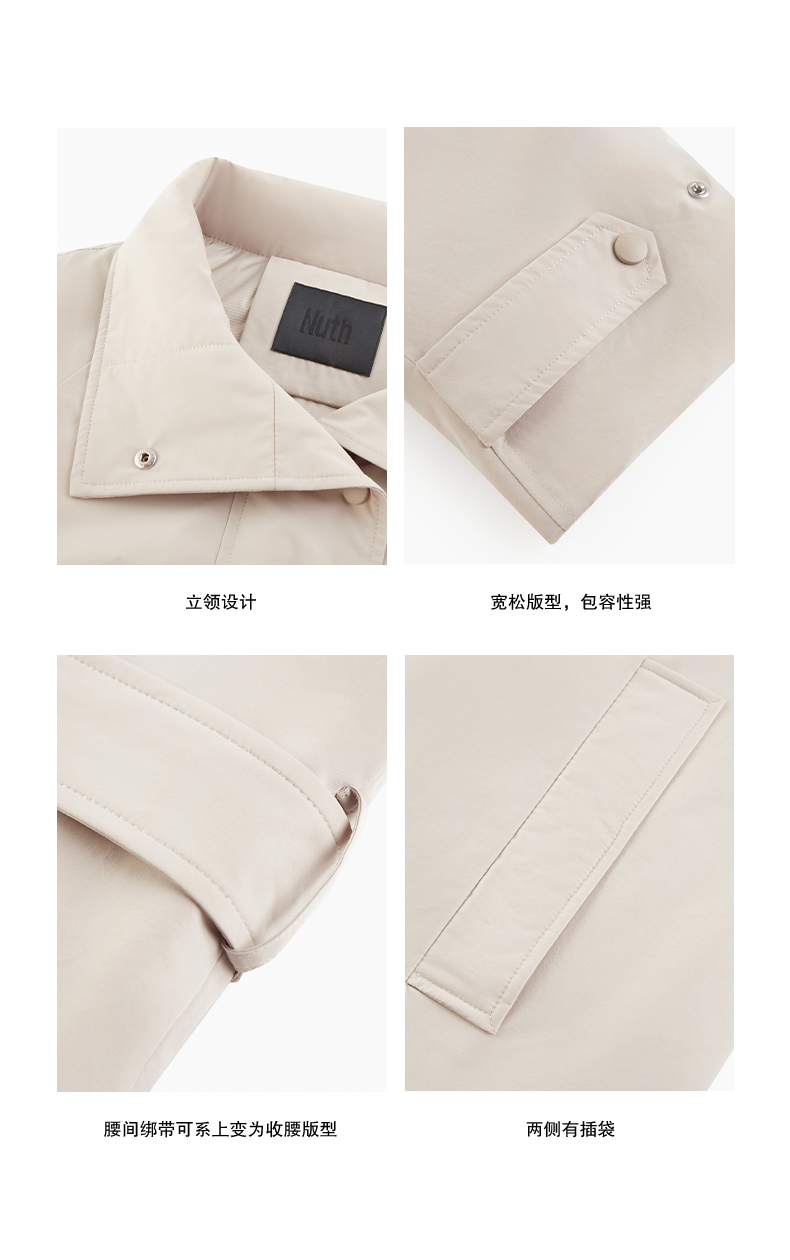 NUTH立领宽松收腰系带长款羽绒服女 90白鹅绒(发货时间同步天猫)